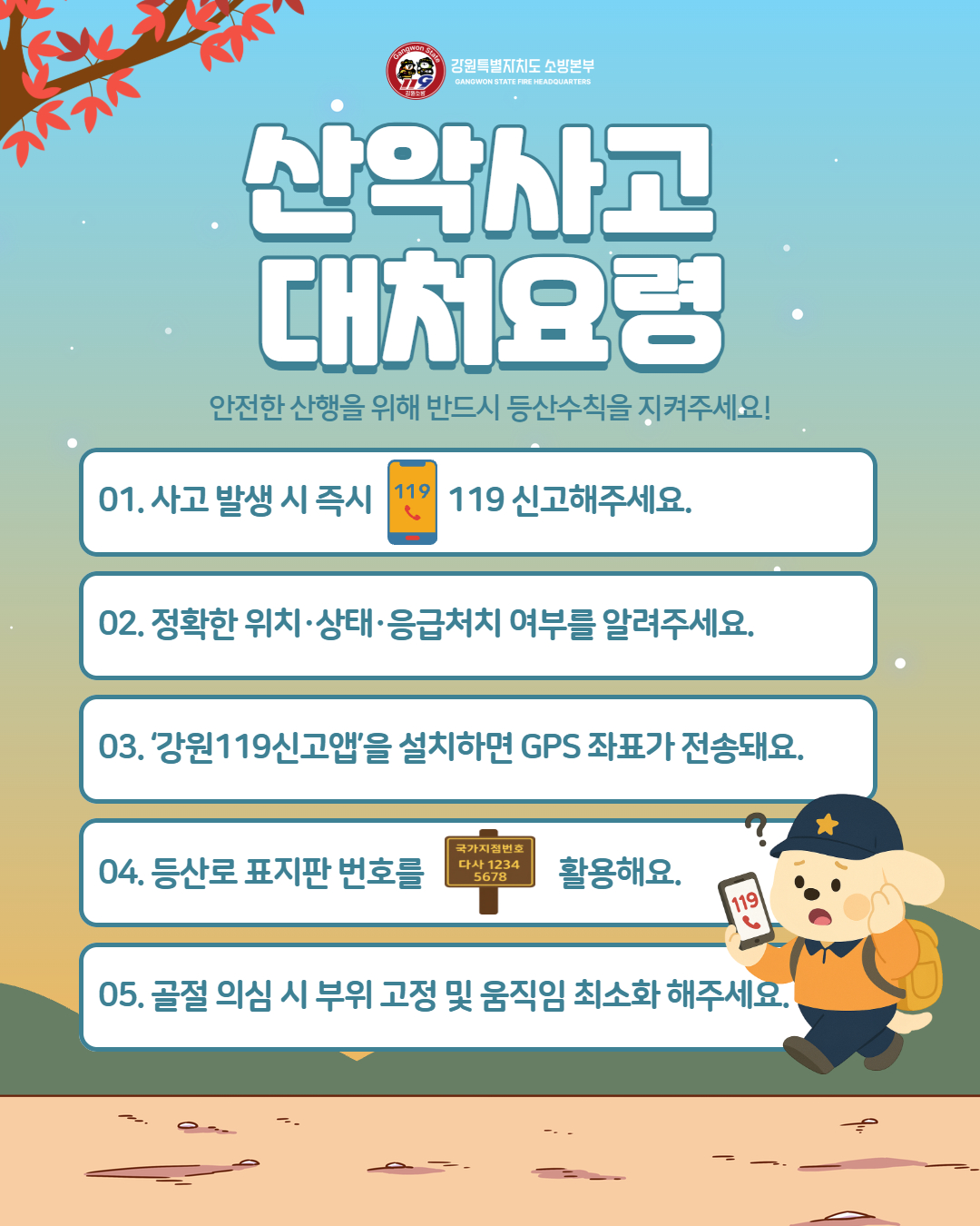 | 26860 | 정선소방서, 가을철 산악사고 대처요령 홍보 | 정선홍보 | 2025-10-17 | 196 | |