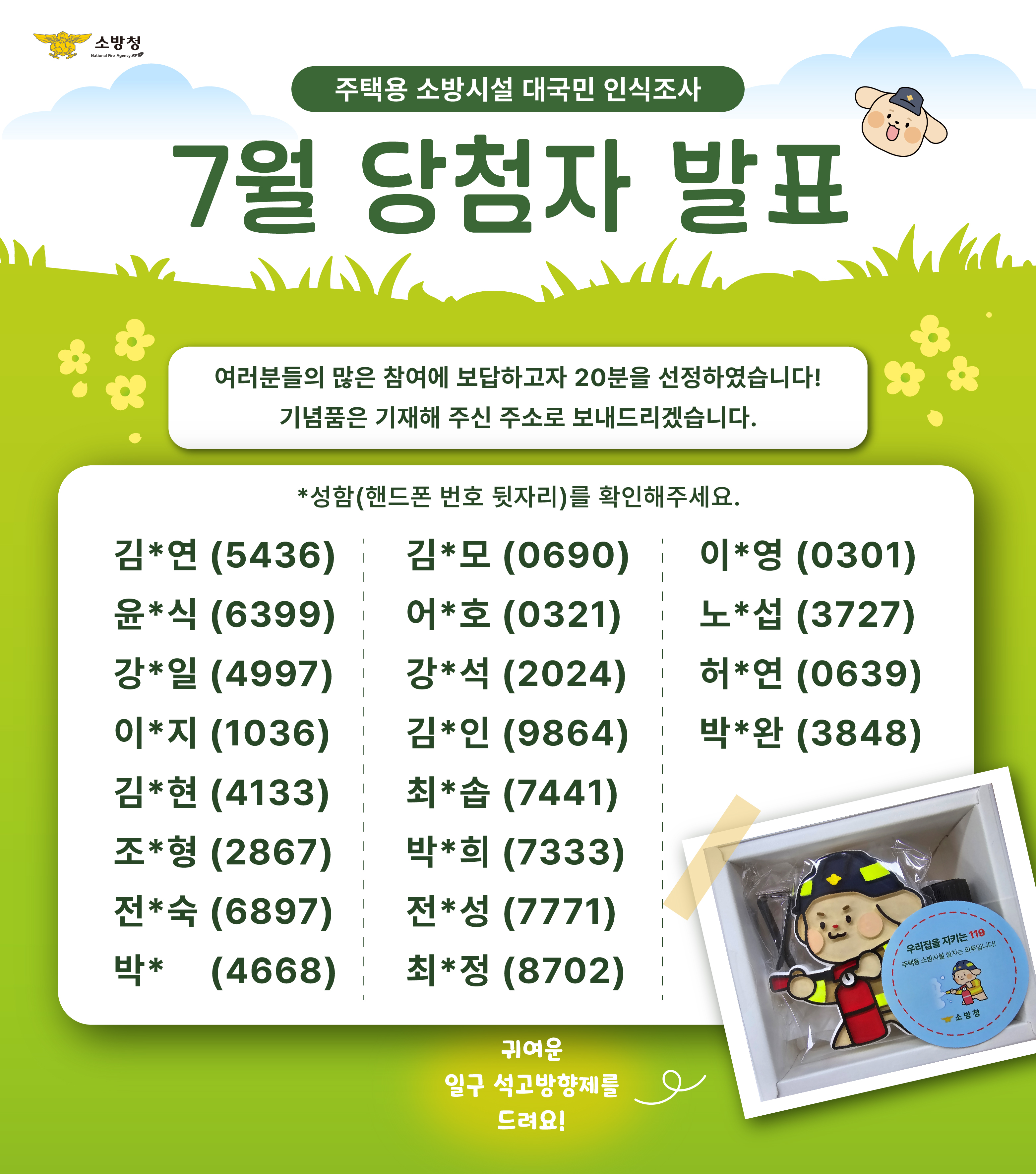 | 26785 | 삼척소방서, 7월 대국민 인식조사 당첨자 발표 | 삼척홍보 | 2024-08-14 | 850 | |