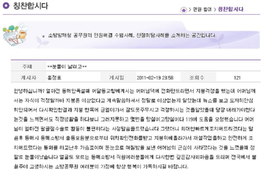 소방방재청 칭찬합시다 펌글