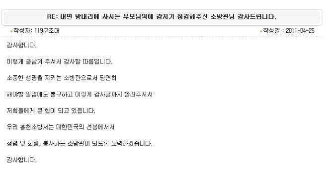 감지기점검관련 칭찬글을 소개합니다