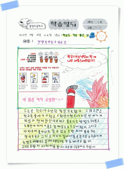 봉양초 한국119소년단원들의 창단식 행사 활동 후기를 첨부합니다.