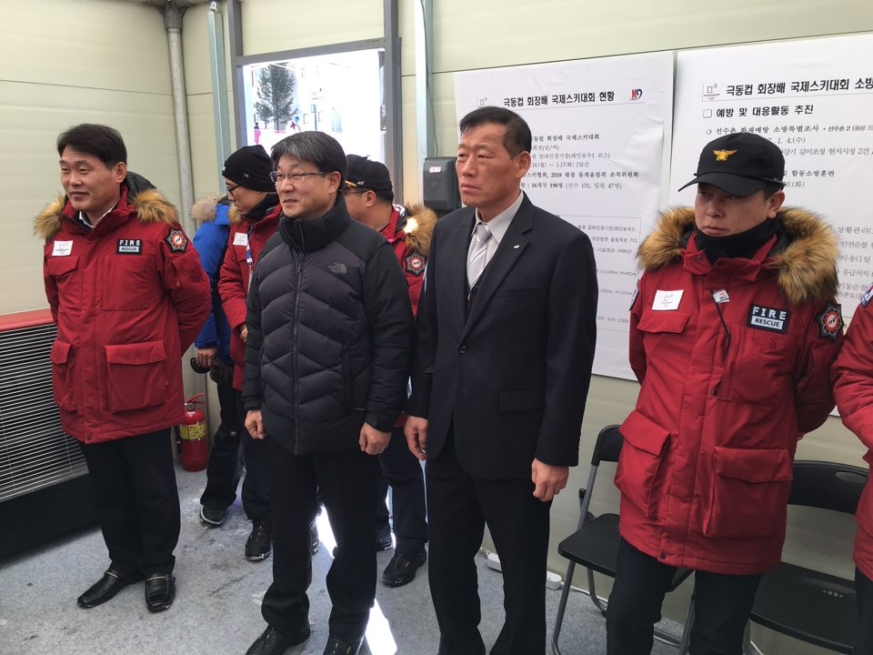 이흥교 도소방본부장은 16일 오전 11시 평창 용평리조트 알파인 경기장을 찾아‘2017 극동컵 회장배 국제스키대회’안전대책 추진사항을 점검하고 직원을 격려하였다.