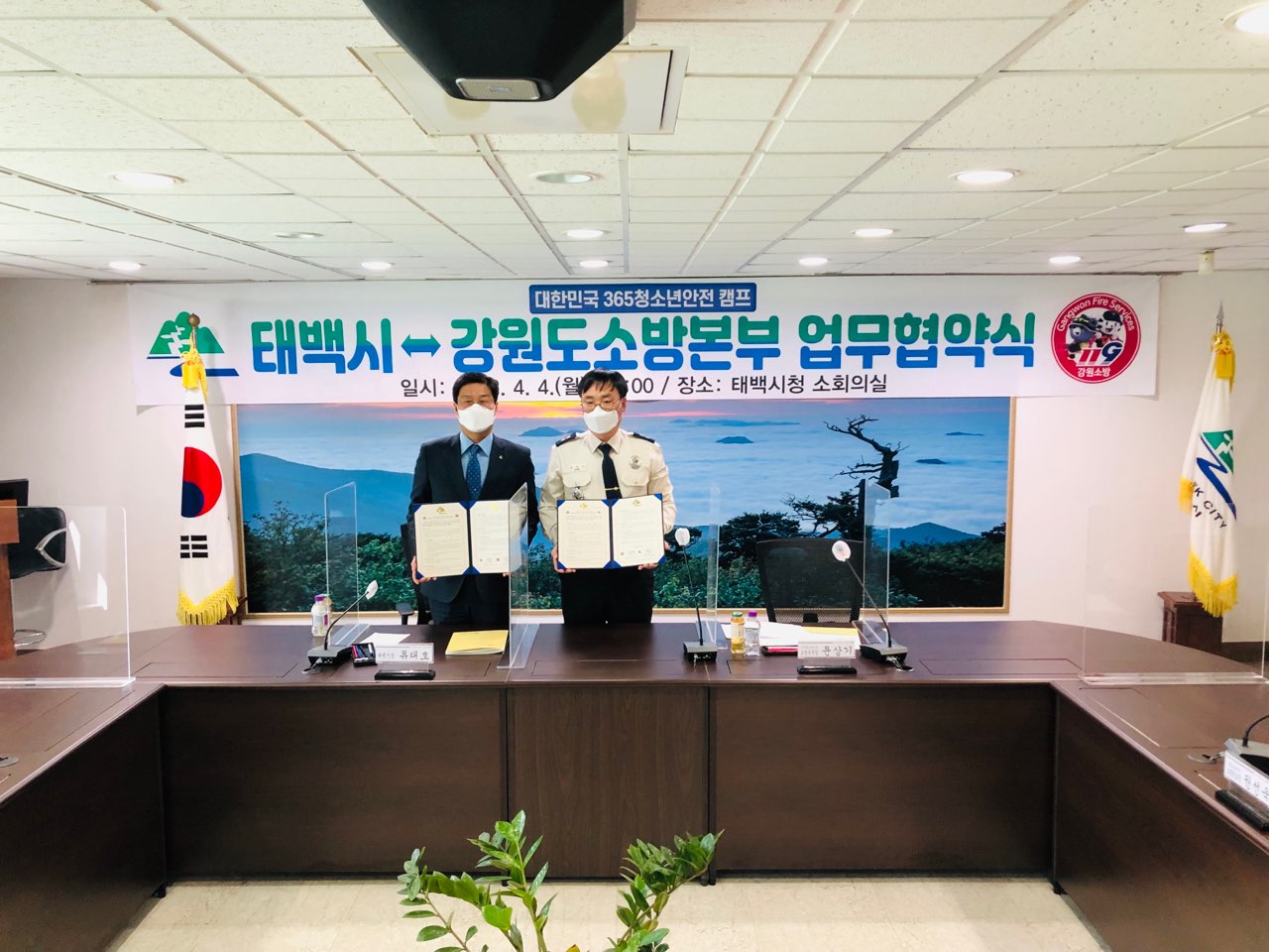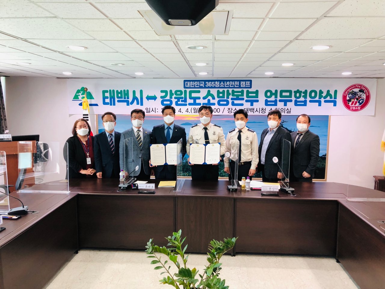 업무협약식에는 윤상기 강원도소방본부장, 류태호 태백시장, 김혁동 강원도의원 등이 참석하였다.