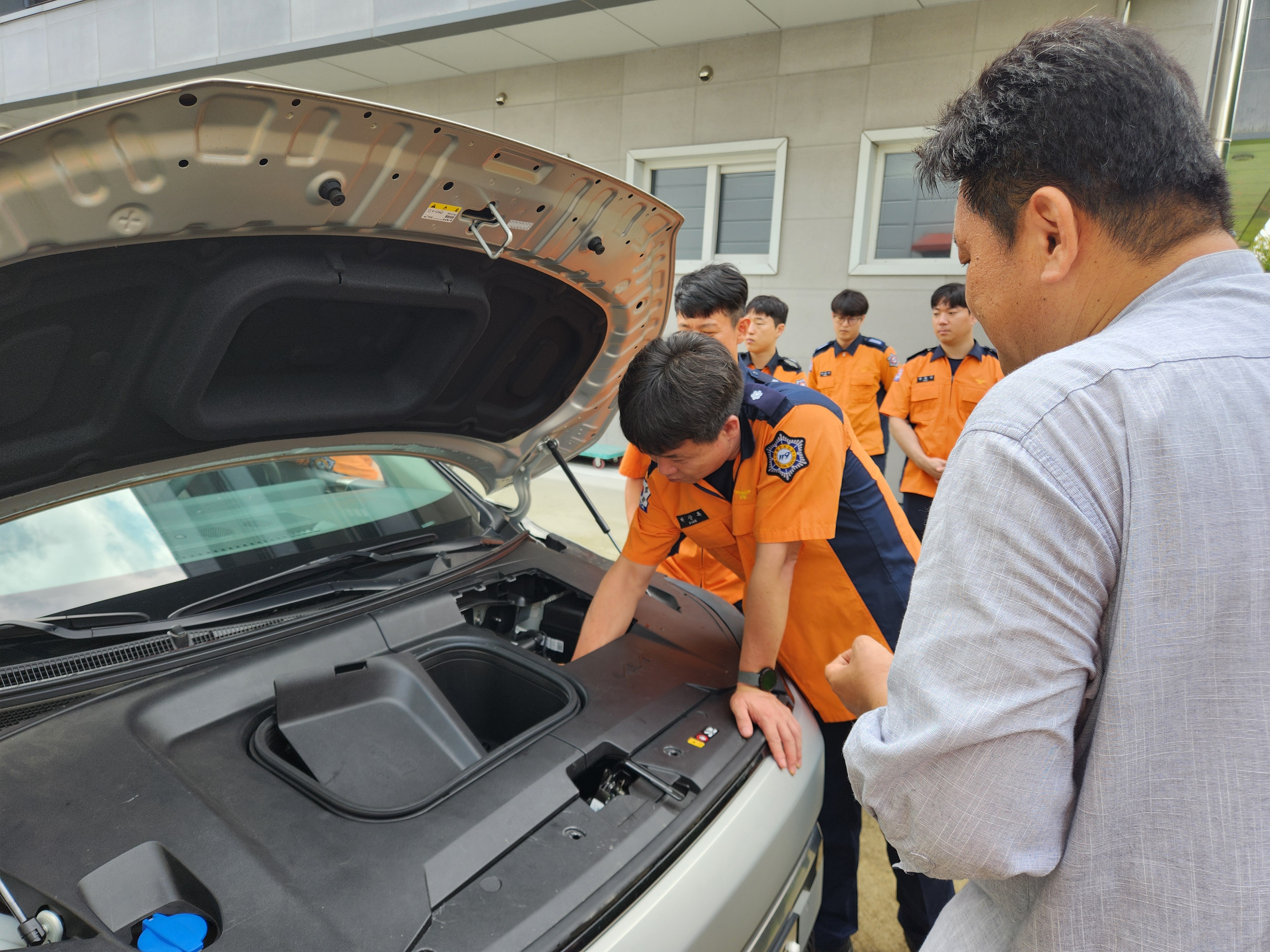 ○ 이번 특별교육에서는 △ 전기차 구조 원리 이해 및 관리방법 등 이론교육, △ 고전압 회로 위치 및 화재 대응 방법, △ 구출작업 및 화재진압 실습 등을 중점적으로 다룰 예정이다.