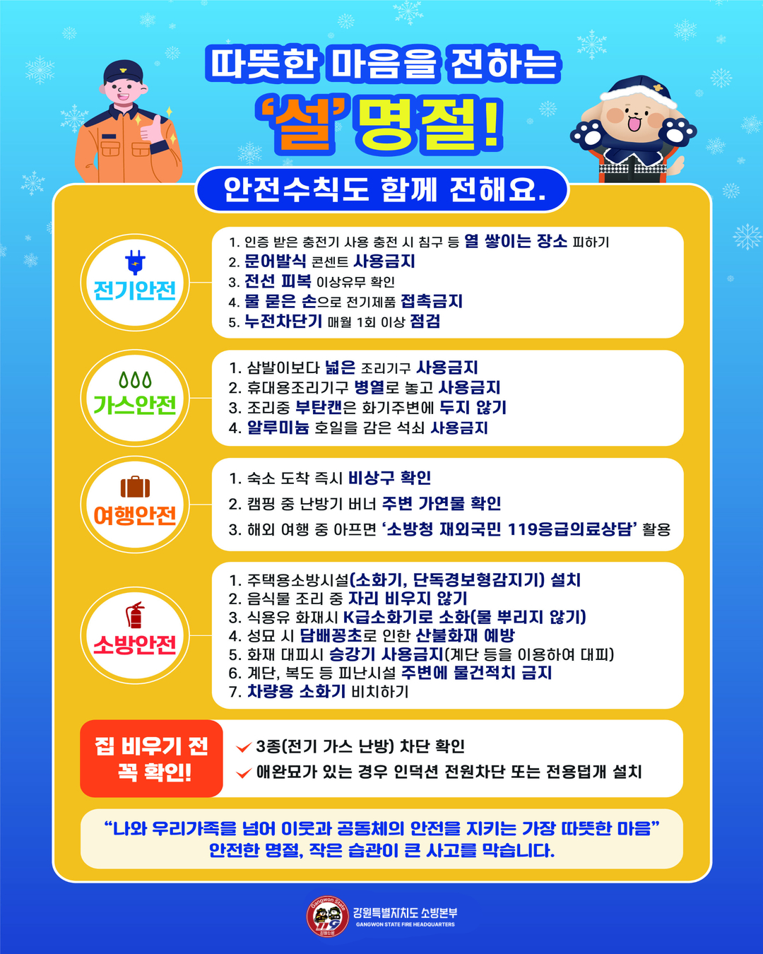 강원소방, 설 명절 연휴 화기 취급 주의 당부