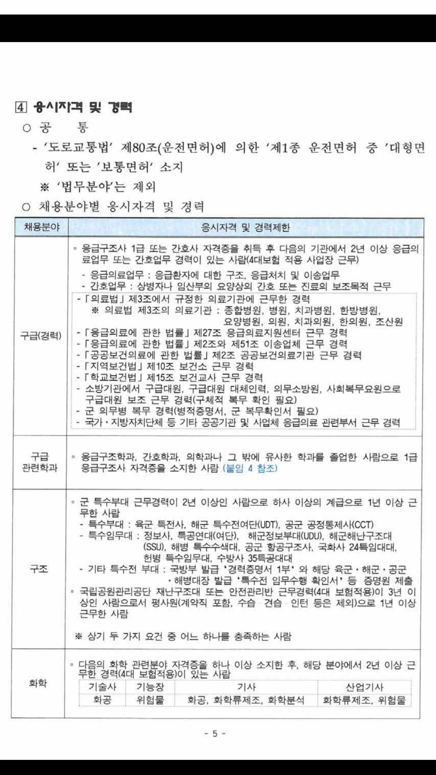 안녕하십니까 구급경력경쟁채용 응시자격에 관하여 문의합니다