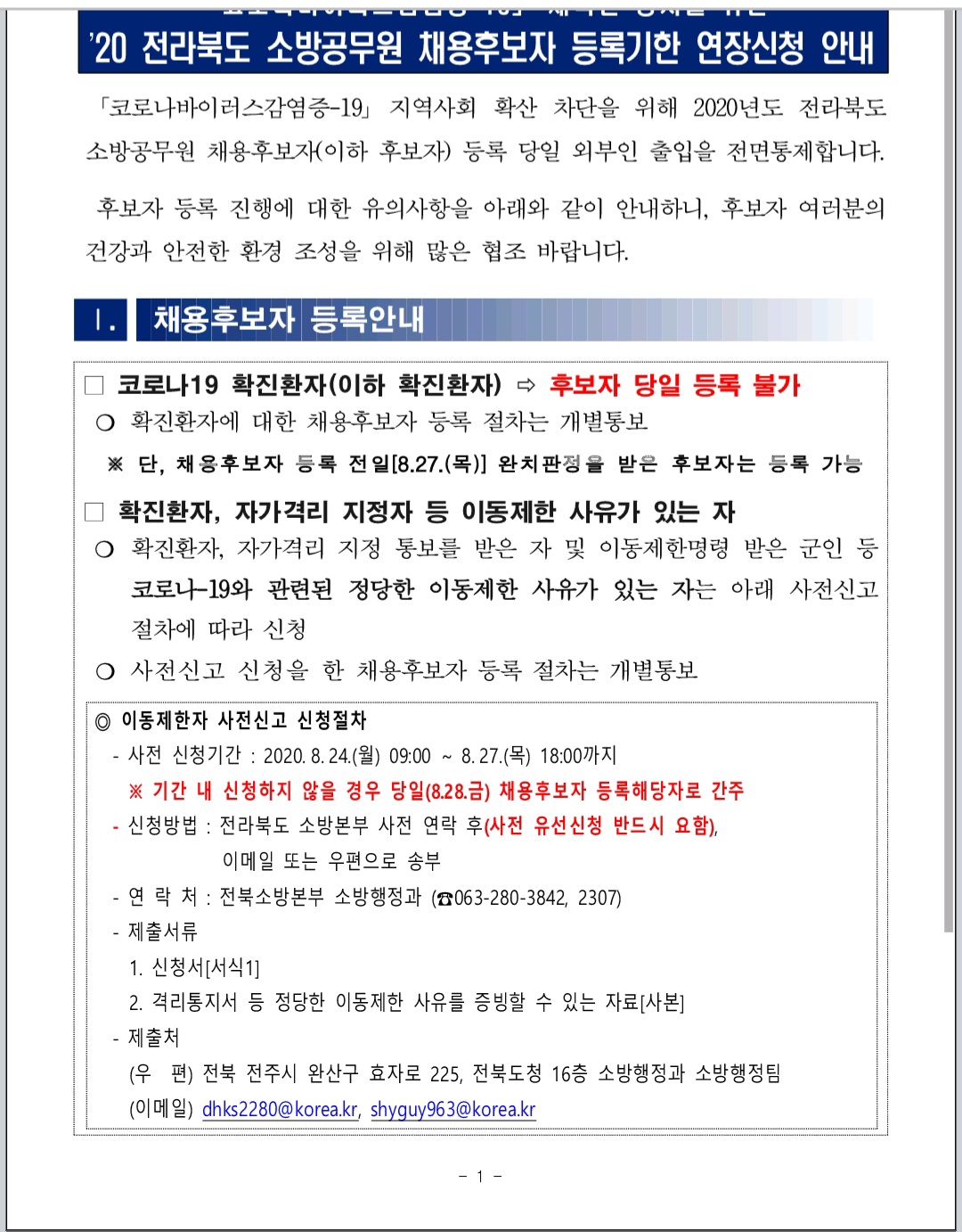 이미 합격공고가 난 몇몇 타 시도 공문을 참고해보니, 코로니 확진자 및 자가격리자도 따로 채용후보자등록을 할 수 있도록 하였더라구요.