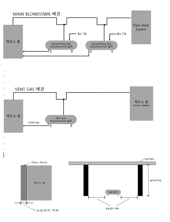 질의1. 후레아스텍 MAIN BLOWDOWN 배관 하부 ACCUMULATOR 신설 시