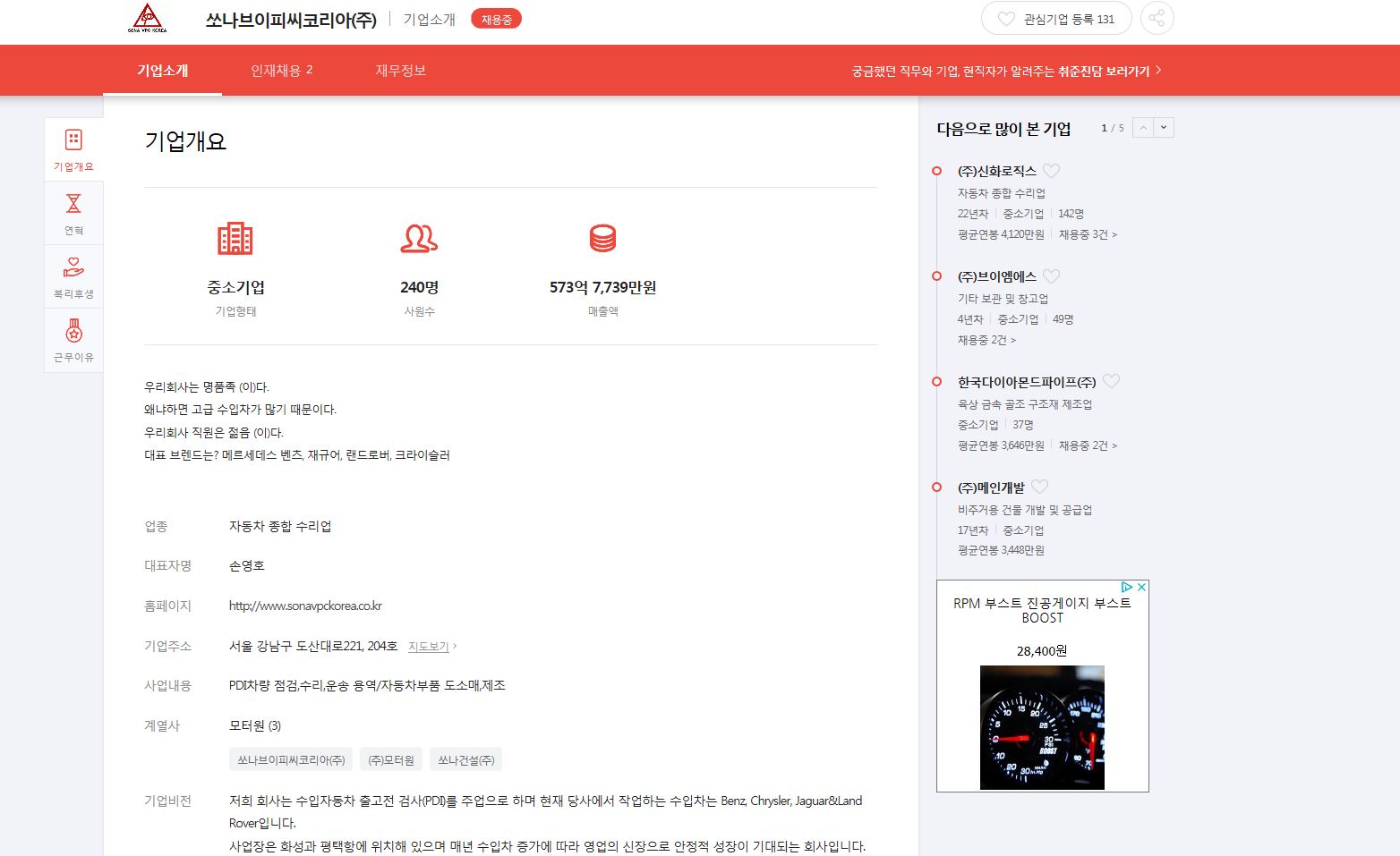 쏘나 vpc 코리아 자동차 종합 수리업 1년 10개월 근무