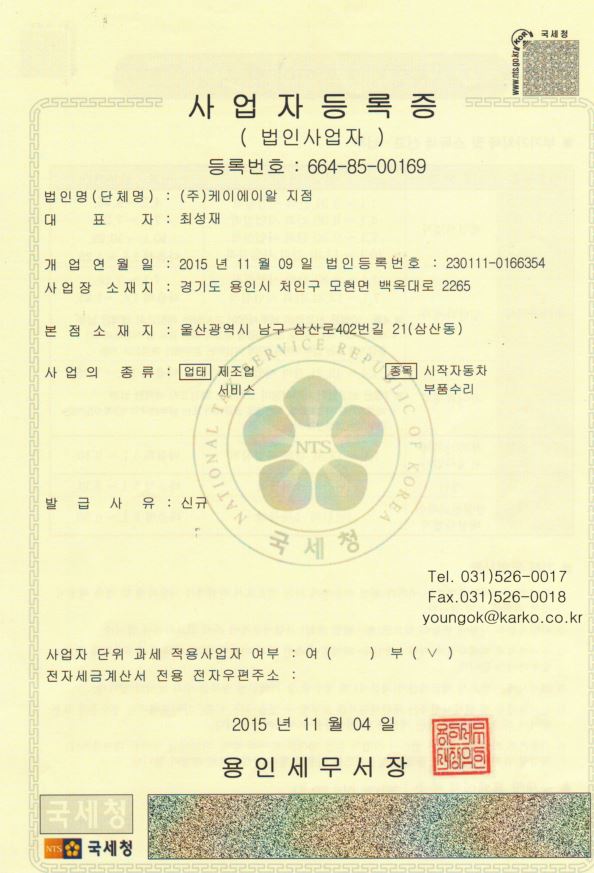 케이에이알 자동차 제조업 (1급 정비공장)