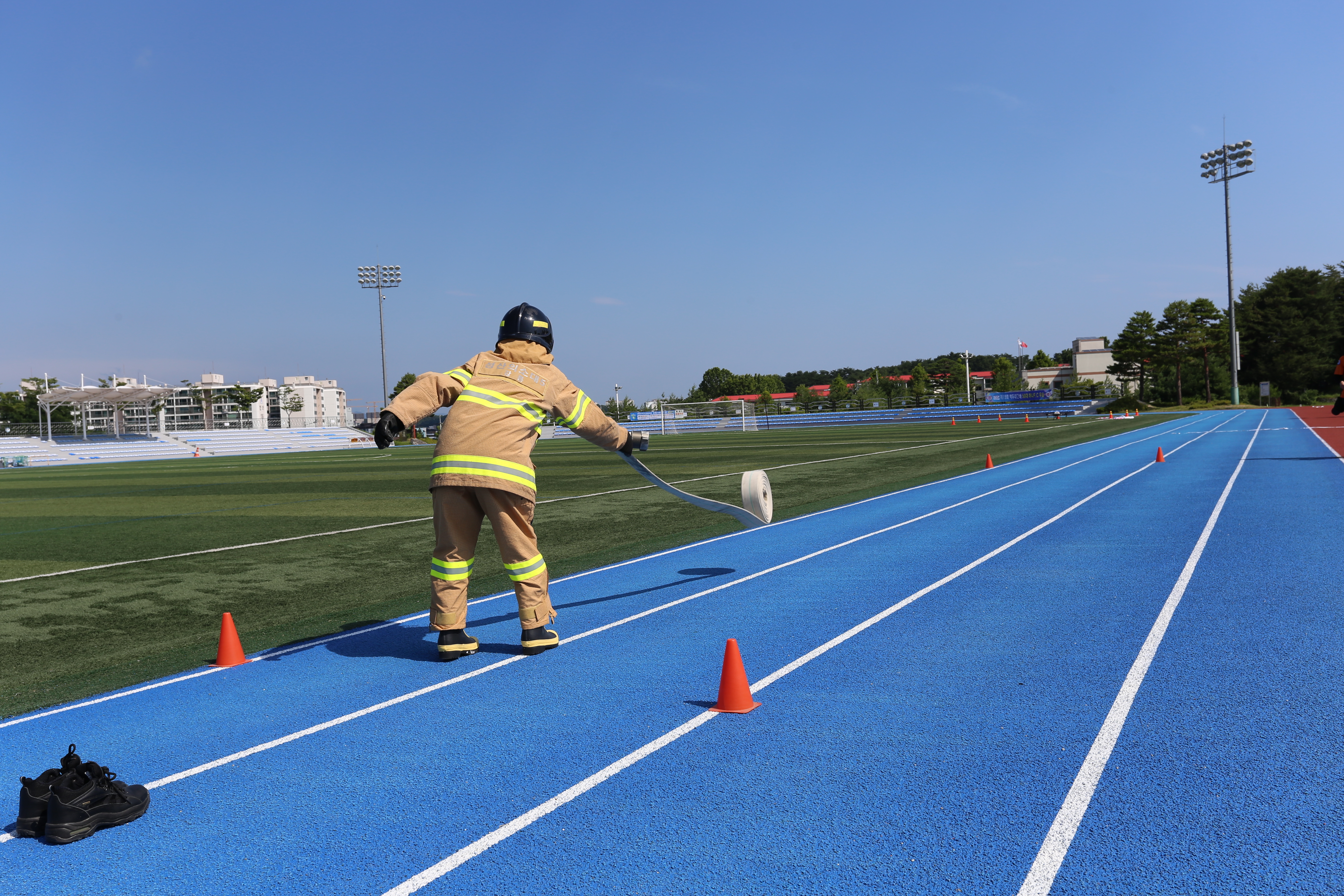 - ①4인조법, ②소방호스전개및회수(남.여), ③외상환자평가, ④심폐소생술 등