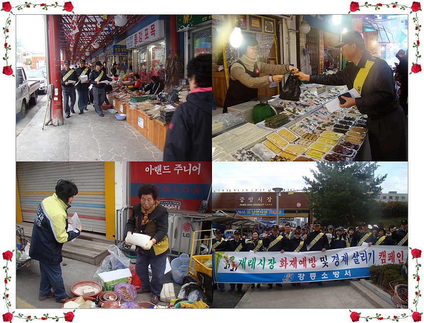 11월 불조심 강조의 달을 맞아 재래시장을 테마로 삼아 캠페인 및 소방안전 점검을 하며, 관내 중앙시장, 성남시장, 주문진시장, 주문진수상시장, 주문진건어물시장 5개소에서 소방공무원, 의용소방대원 및 중앙시장 번영회 등 138명이 참여하였다.