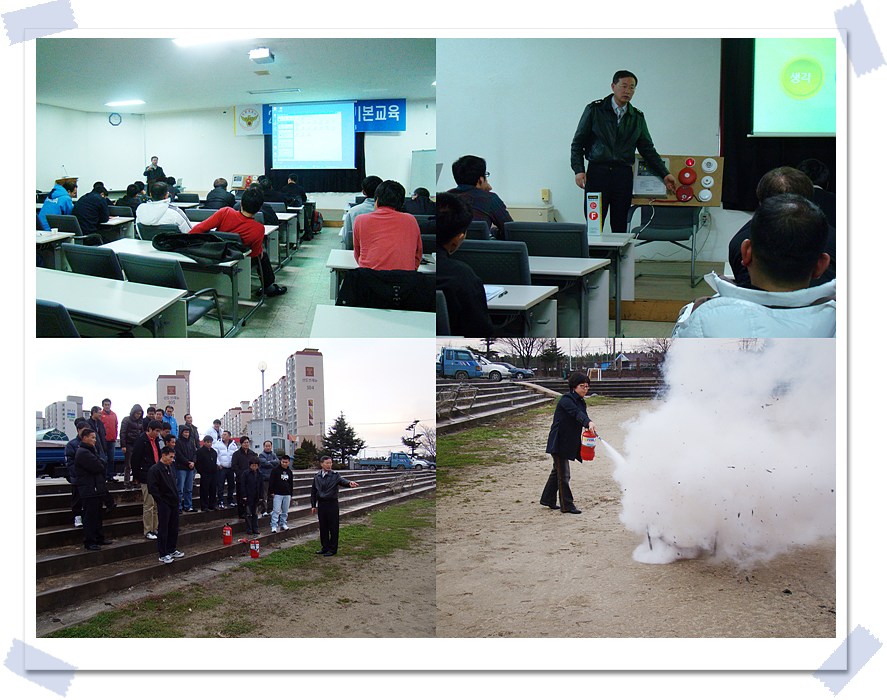 화재 발생시 행동요령, 자동화재탐지기 사용 방법, 소화기 사용법 등의 기본 이론교육을 실시하였고, 교육 내용 중에서 퀴즈를 내어 정답을 맞춘 분에게 차량용 소화기를 상품으로 전달하였다. 이론교육 후에는 실제 소화기를 직접 체험하는 시간도 가졌다.