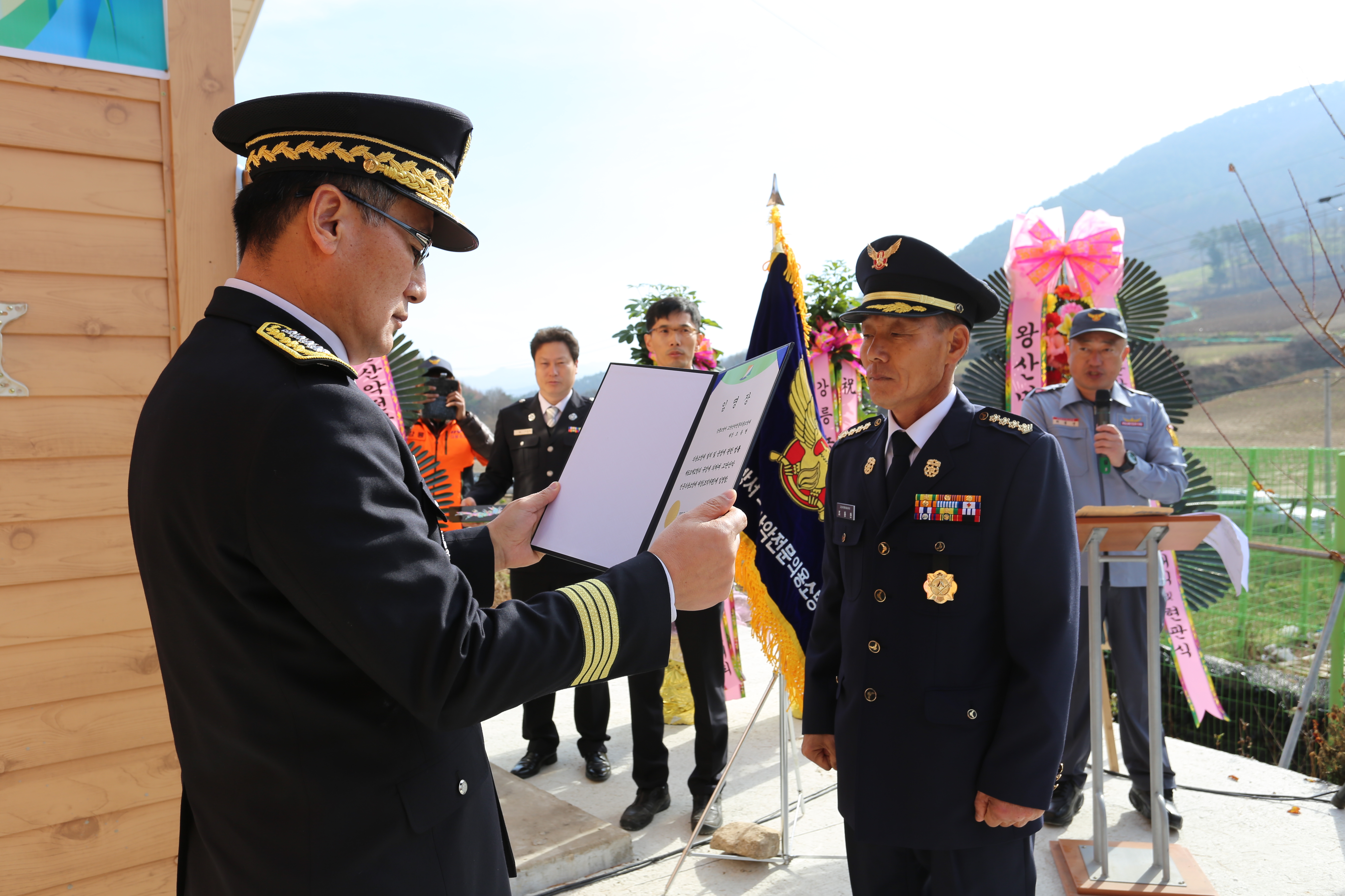 내용 : 고단산악전문의용소방대 발대식 및 화목보일러 자동확산소화기 기증