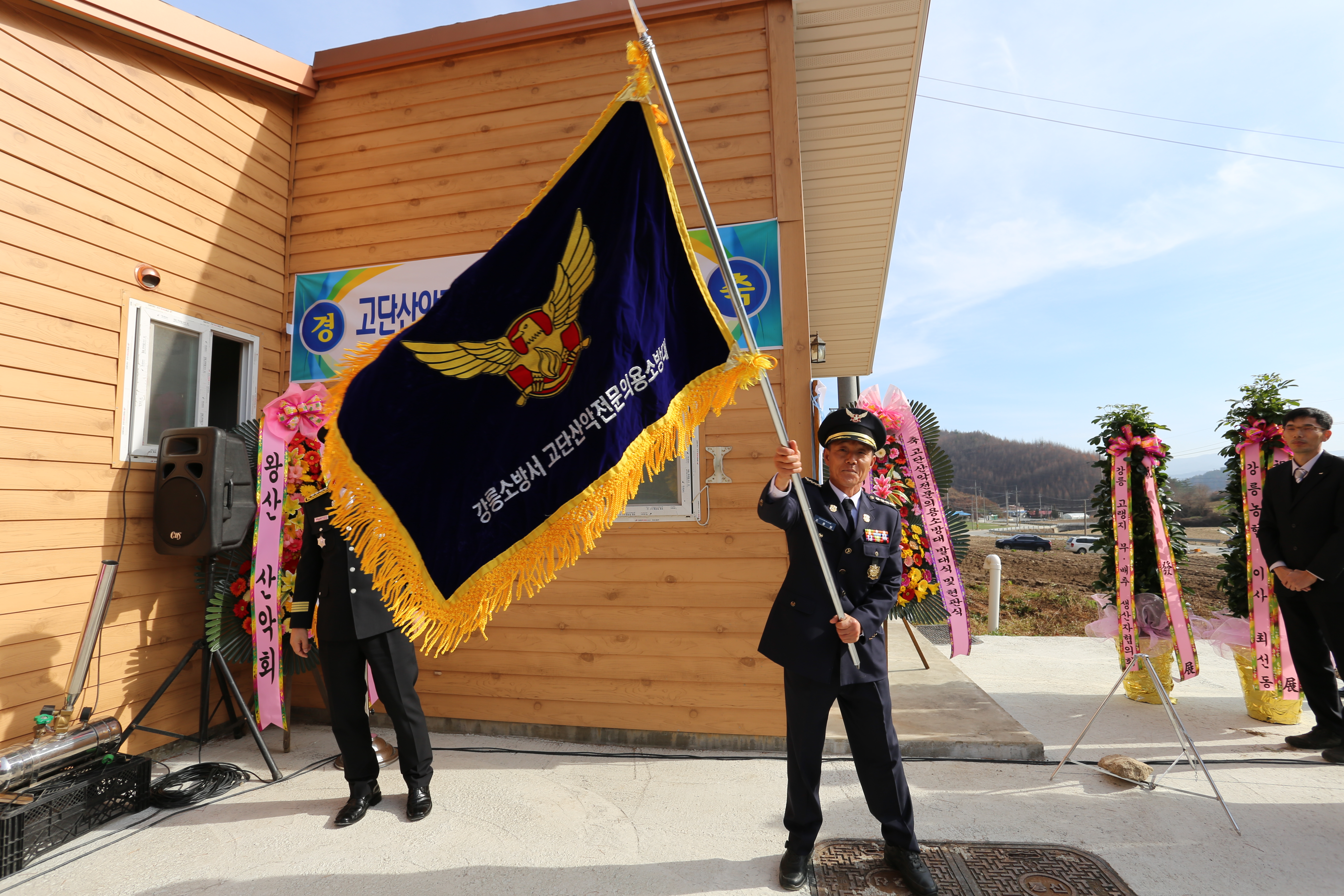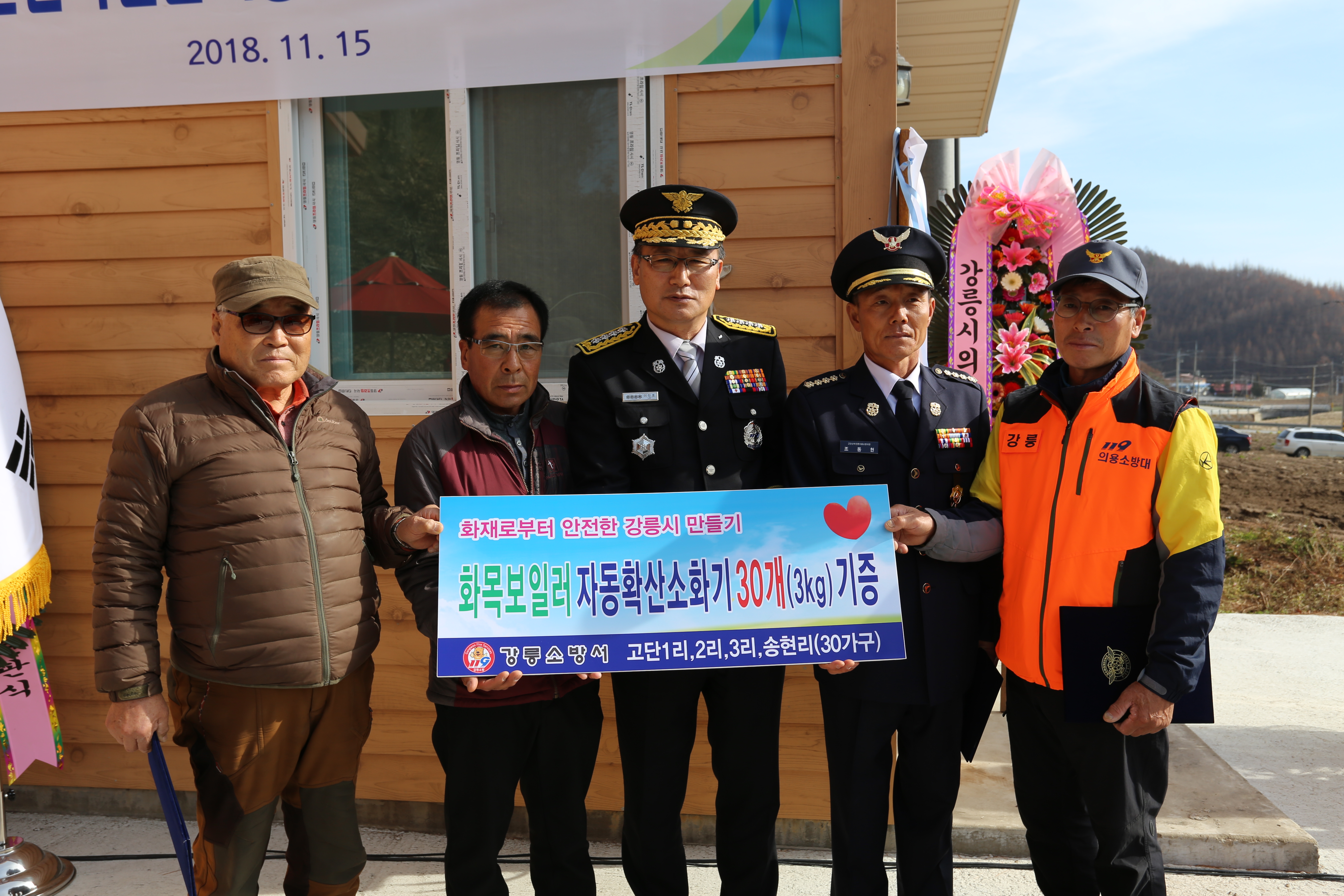고단산악전문의용소방대 발대식 및 화목보일러 자동확산소화기 기증행사