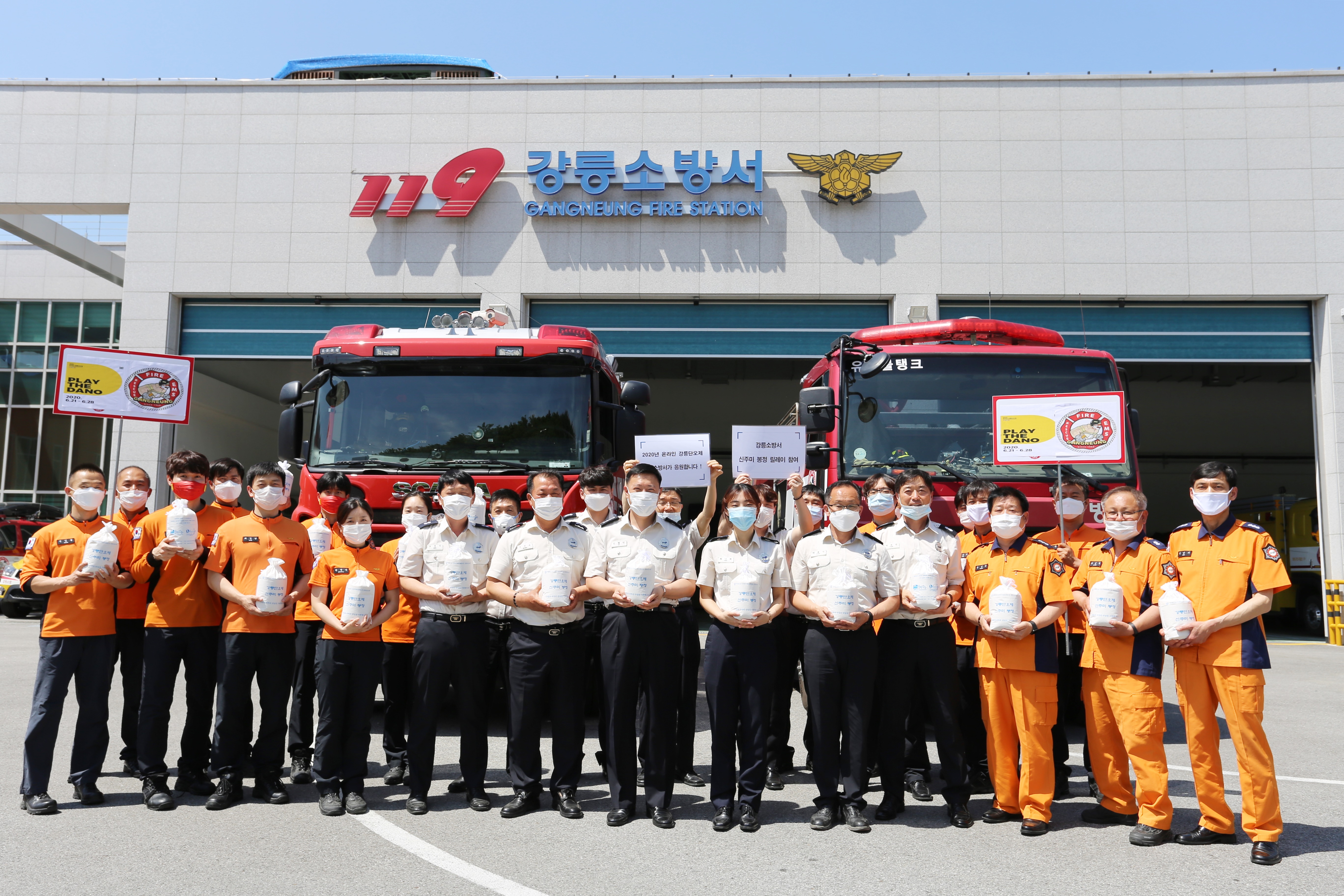 강릉소방서는 3일 오후 강릉경찰서장님의 지목을 받아 강릉단오제 신주미 봉정 릴레이에 참여했습니다
