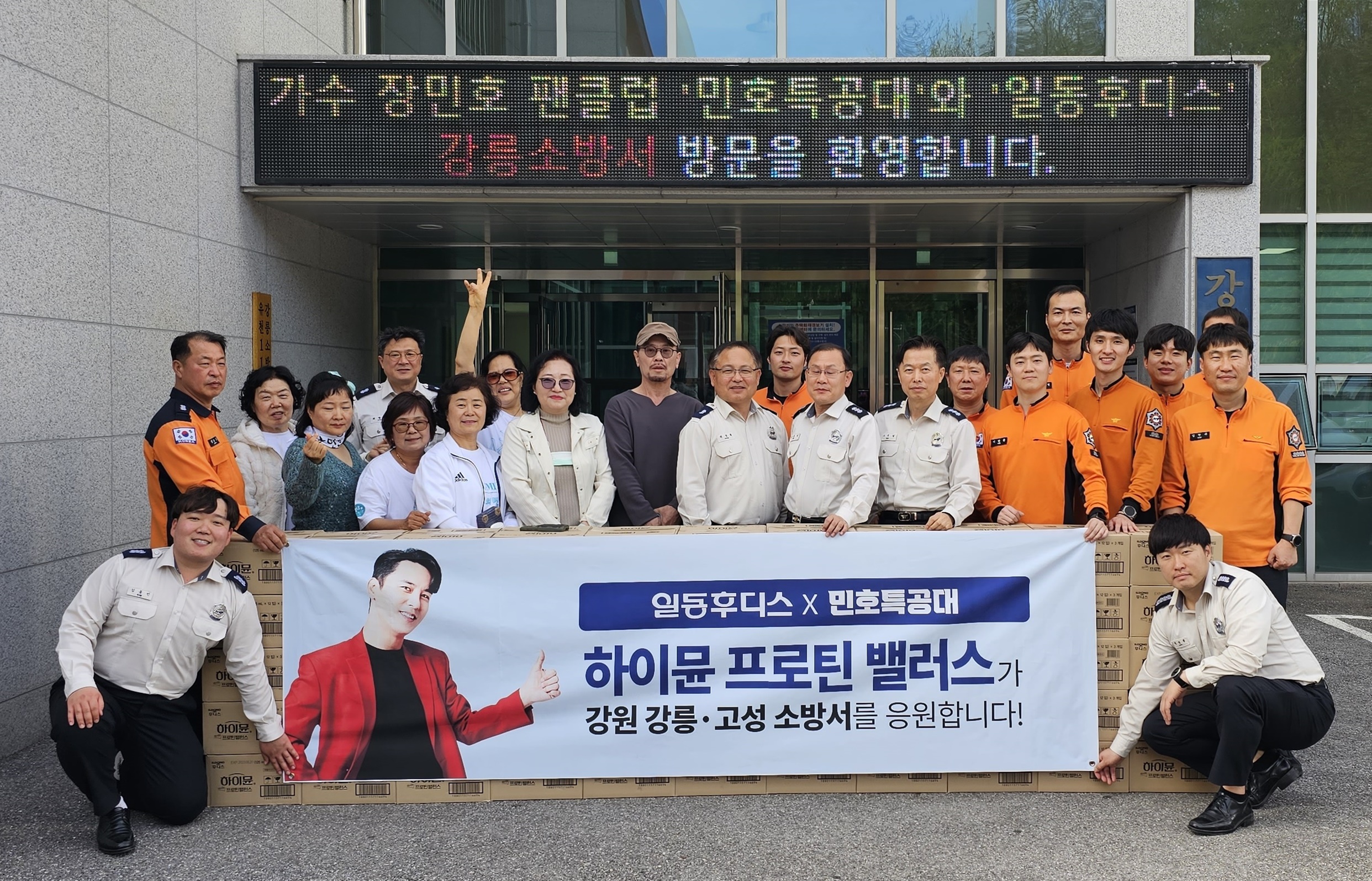 가수 장민호 팬클럽 '민호특공대'와 '일동후디스'에서 강릉소방서에 기부물품(하이뮨)을 전달하였습니다.