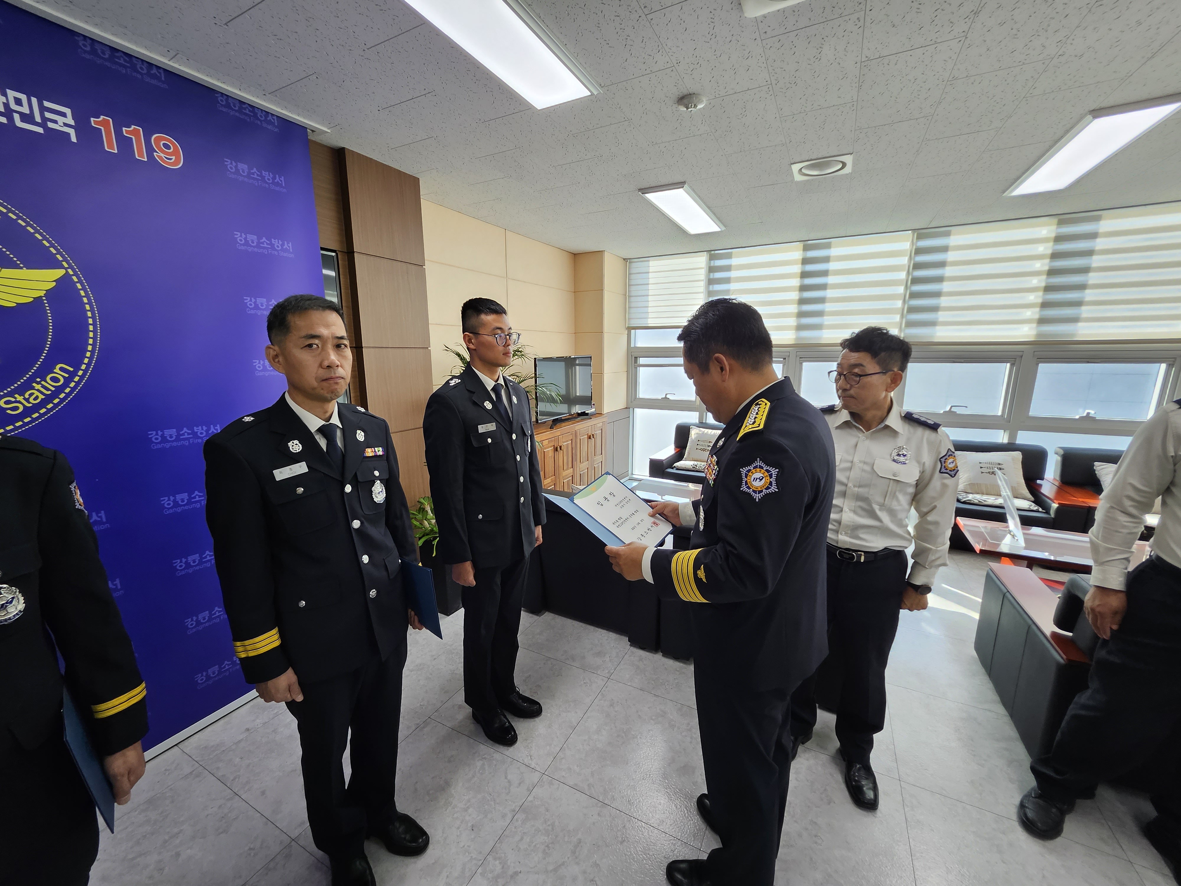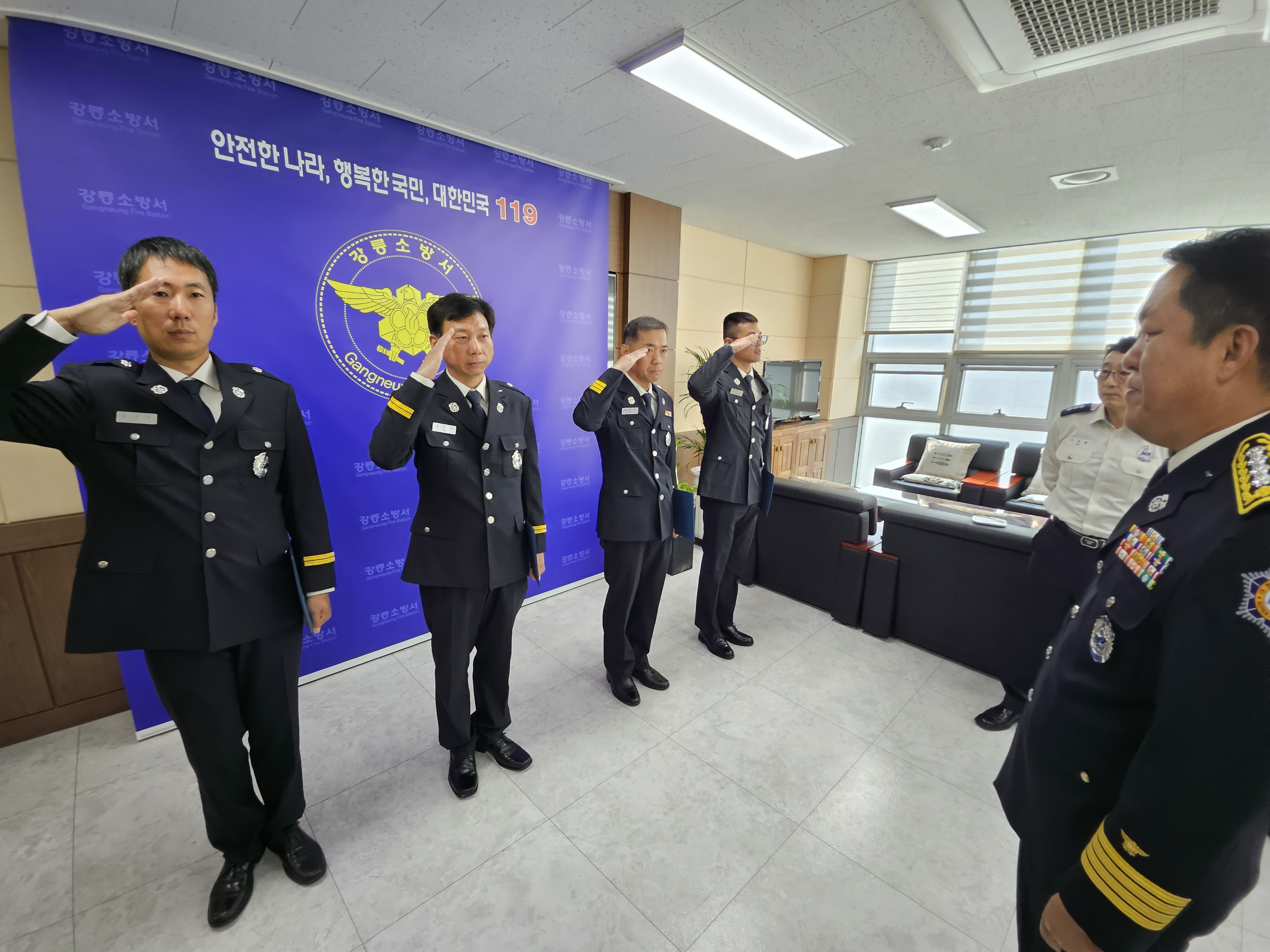 금일 강릉소방서 인사발령 신고식이 있었습니다. 안전근무되십시오!