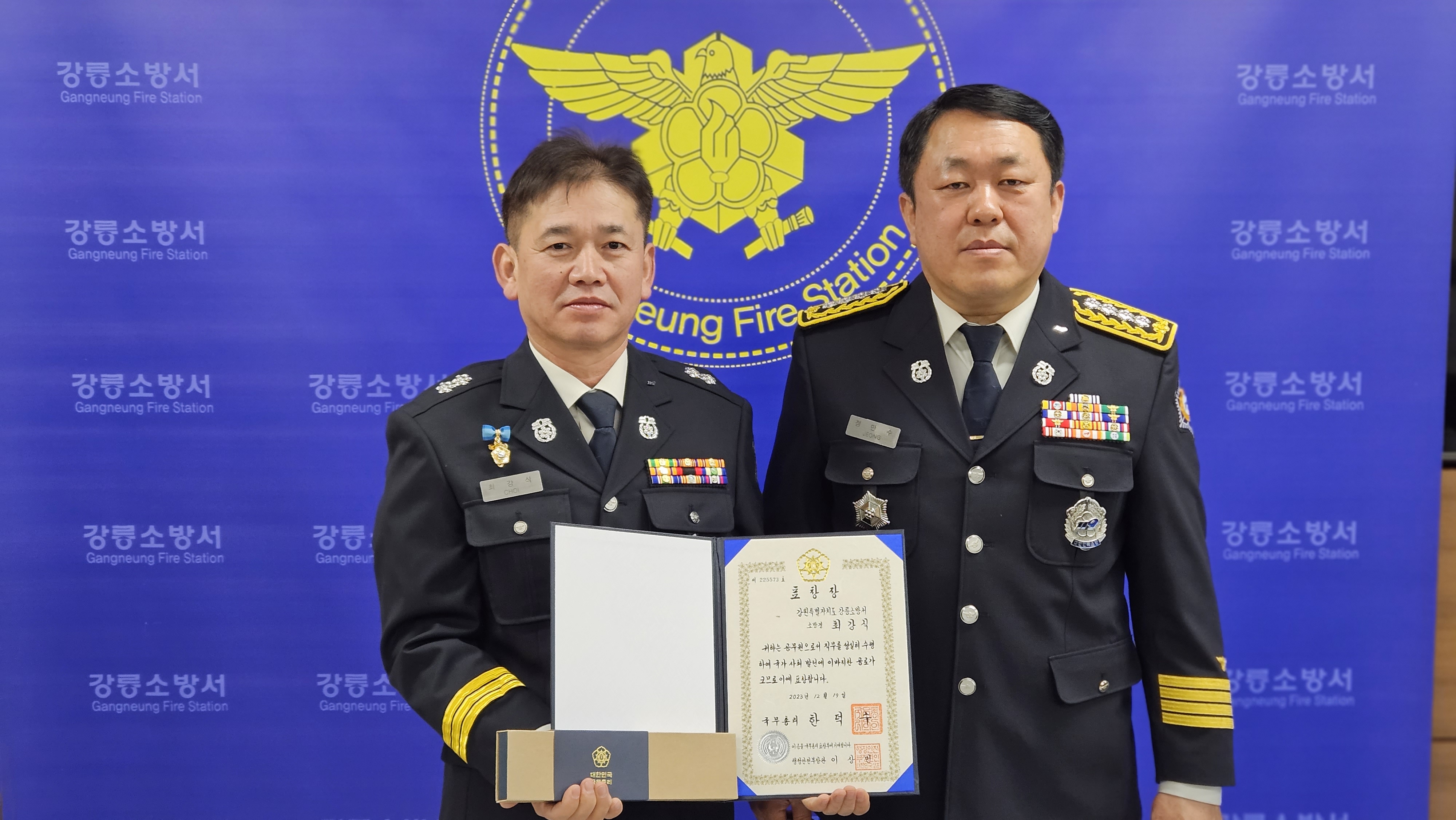 강릉소방서 최강식 소방경, 국무총리 대테러 업무추진 유공 표창장 수상