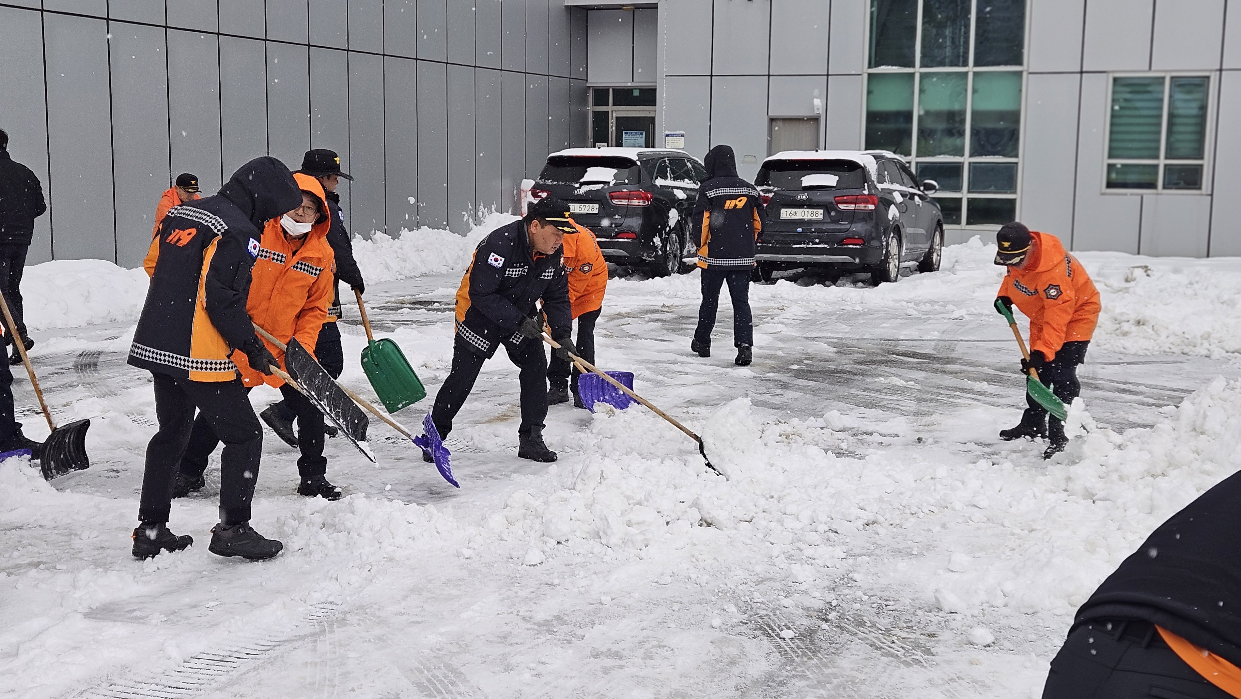 강릉소방서, 폭설에 따른 제설작업 실시