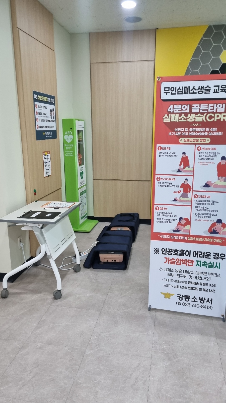 강릉소방서는 지역 내 주민들을 대상으로 누구나 쉽게 이용하고 배워볼 수 있는 무인 심폐소생술 교육장을 운영중에 있는데요,
