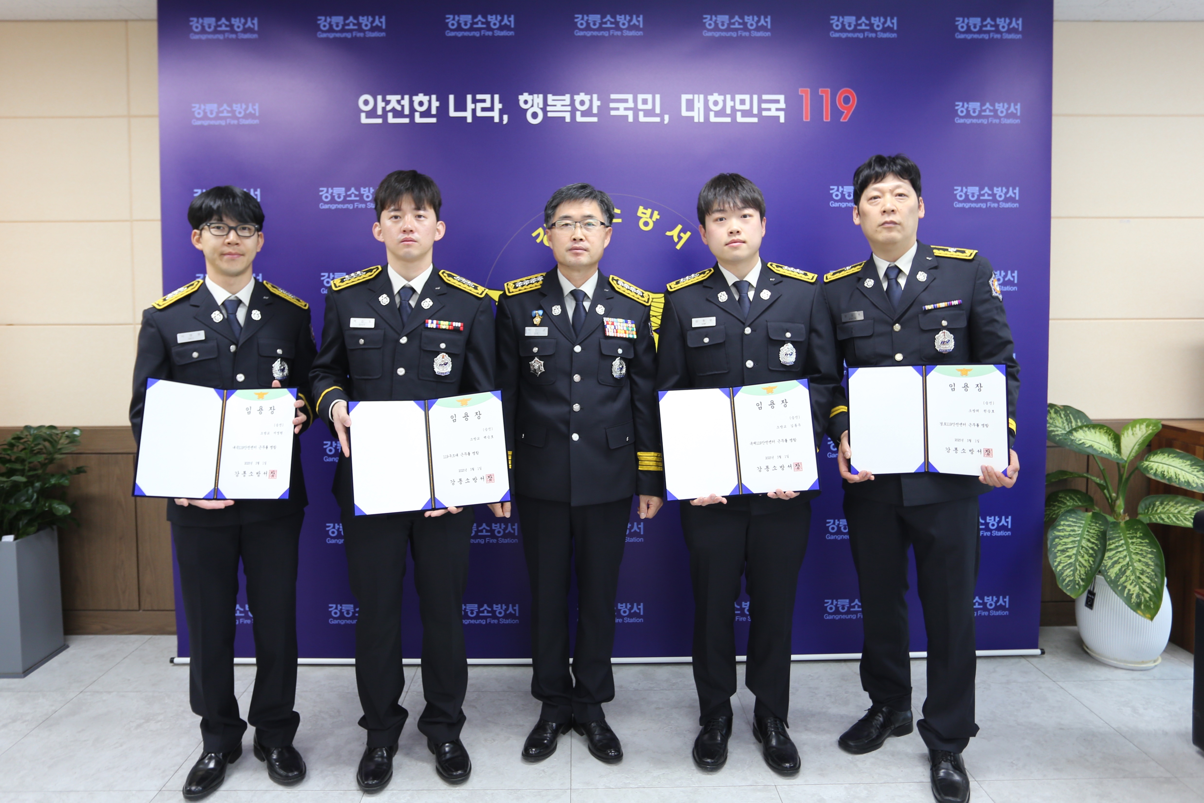 2025년 3월 4일 오전 9시 서장실에서 근속승진 임용장 수여식을 개최하였습니다!