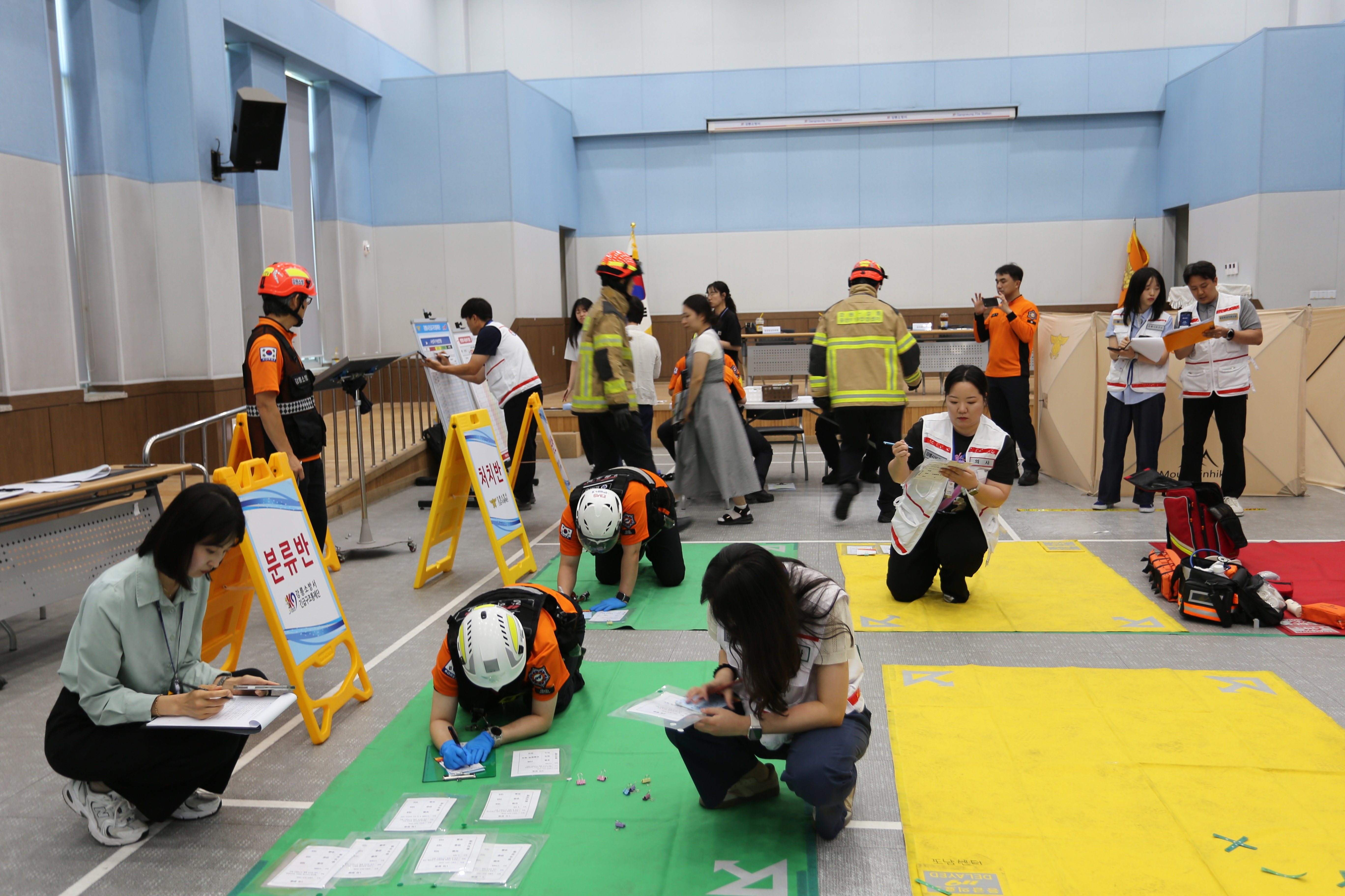 강릉소방서 구급대원 68명은 대회의실에서 다수사상자 구급 대응응 훈련(평가)를 실시하였습니다!