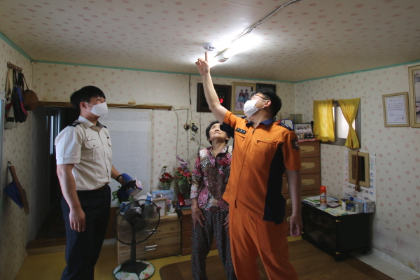 참전유공자·전상군경유족 등 총 3개 가구를 대상으로 가구별 소화기 1개와 구획 된 실마다 단독경보형 감지기를 설치·보급했다.