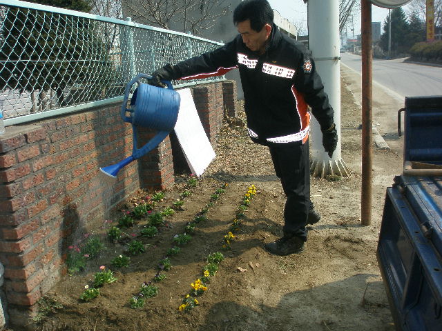 소방서 정문 화단에 꽃 심었습니다.