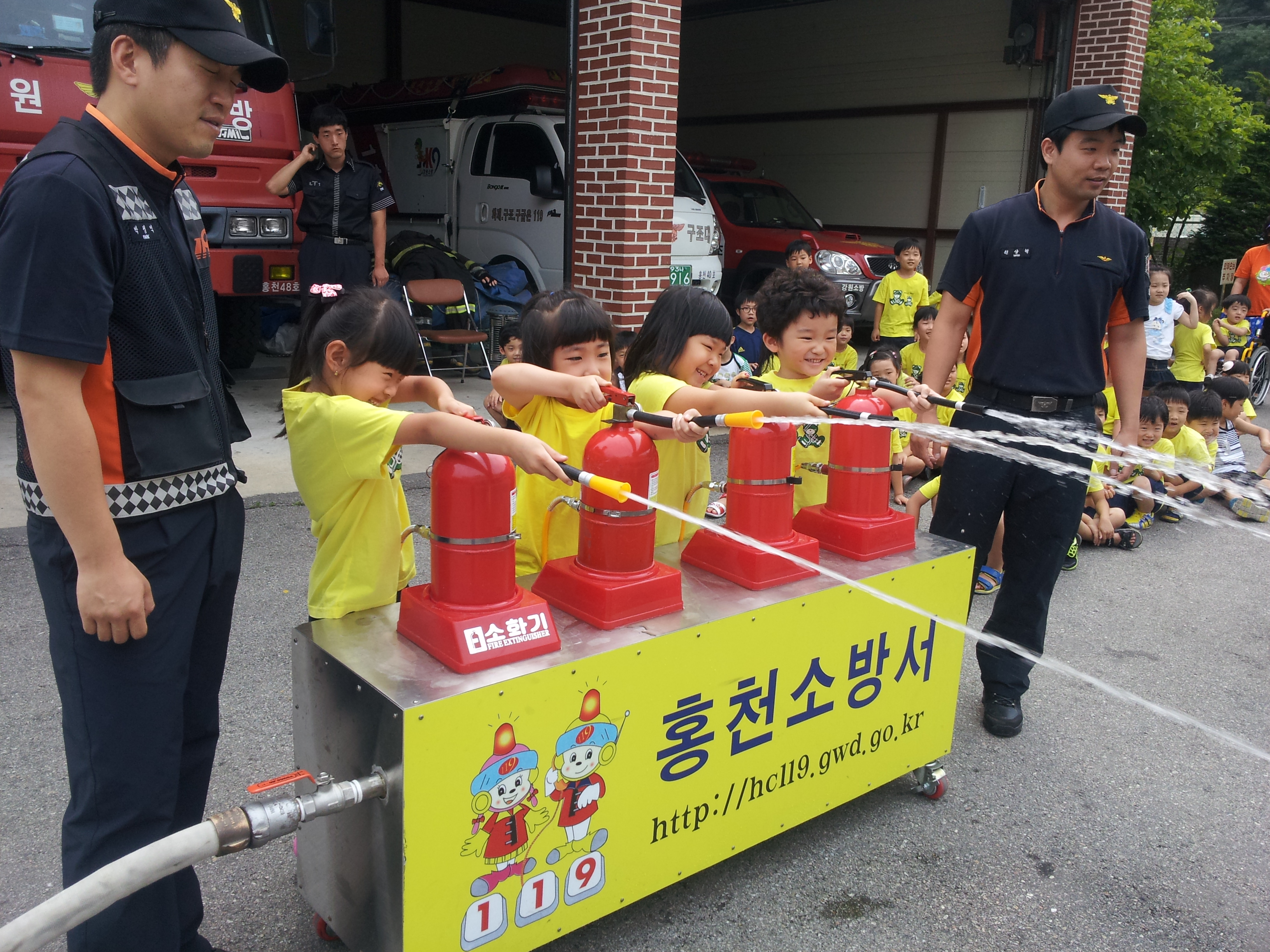 홍천읍 신장대리 소재 너브네유치원(원장 최정심) 원생 60명이 우리서를 방문하여 소방챠량, 장비 등 호기심 많은 기대치를 채워주고자 보고, 만지고 ,올라 타보며 즐거운 시간을 가졌다. 또한 어린이 눈높이에 맞는 체험,교육으로 화재시 비상벨(경보음) 소리 체험과 작동시 대처요령 및 연기 발생시 우선행동으로 피난요령 등, 유사시 어린이 안전과 피난에 제일 중점을 두었다.