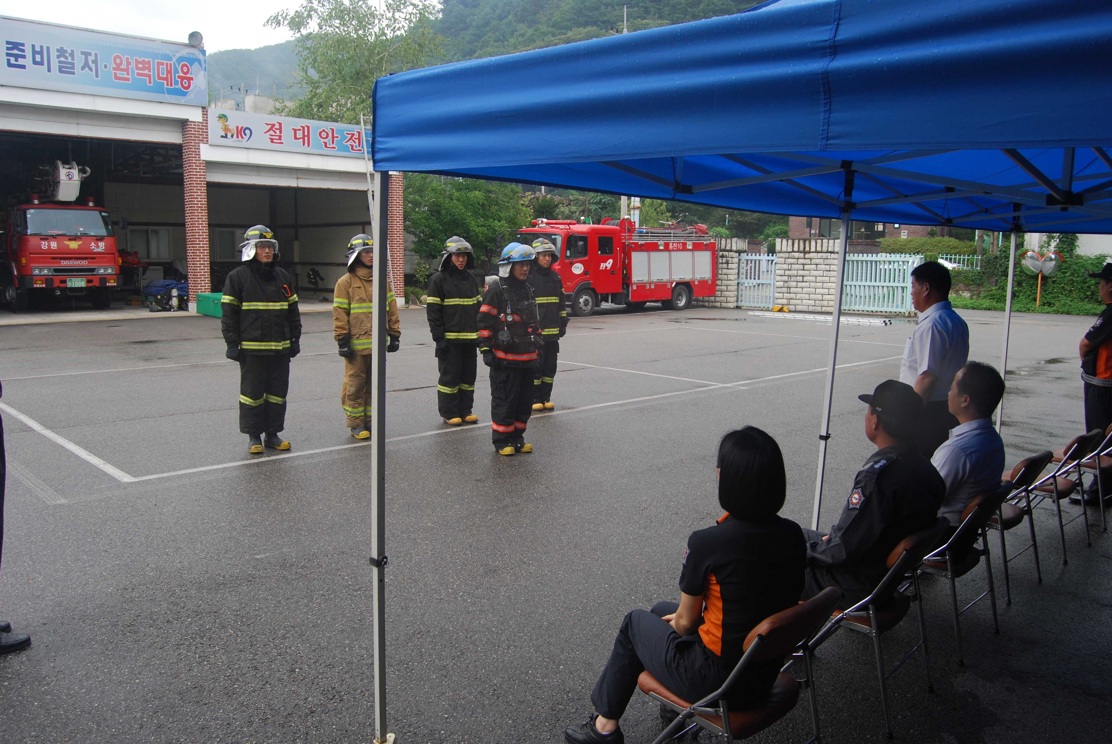 홍천소방서(서장 이종진)는 제2회 소방전술경연대회 출전을 하루 남겨두고 본서 훈련장에서 최종 훈련 시연회를 가졌다. 앞서 점심 오찬자리에서 "최선을 다하면 그 결과는 따라 올것이다"라고 선수단을 격려하며 서 대표로 나가는 만큼 최선을 다해 줄것을 당부했다.