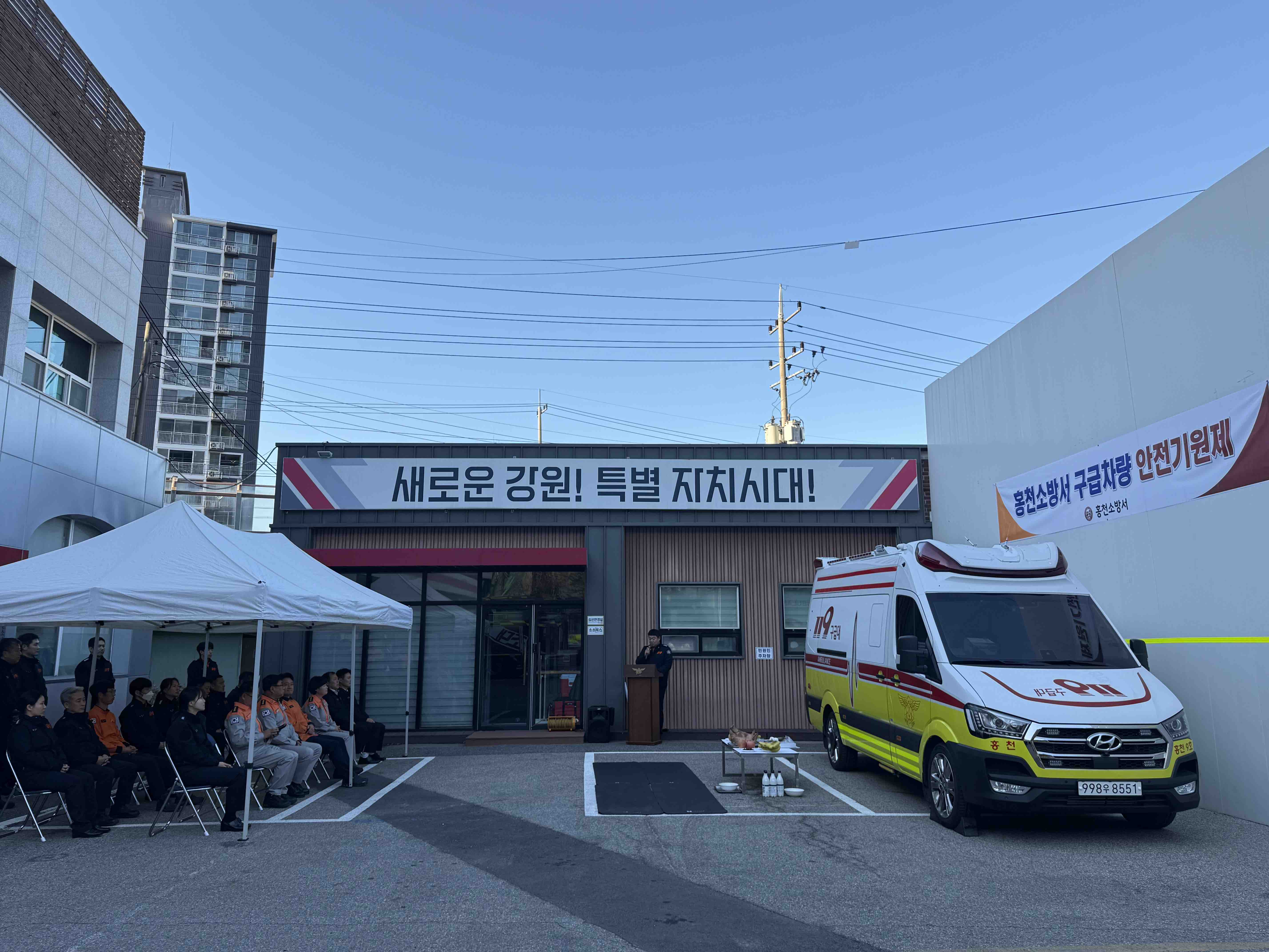 홍천소방서(서장 이강우)는 12일 홍천119안전센터에서 감염병 환자 이송에 특화된 ‘119음압구급차’의 안전한 운용을 기원하는 구급차량 안전기원제를 개최했다고 밝혔다.