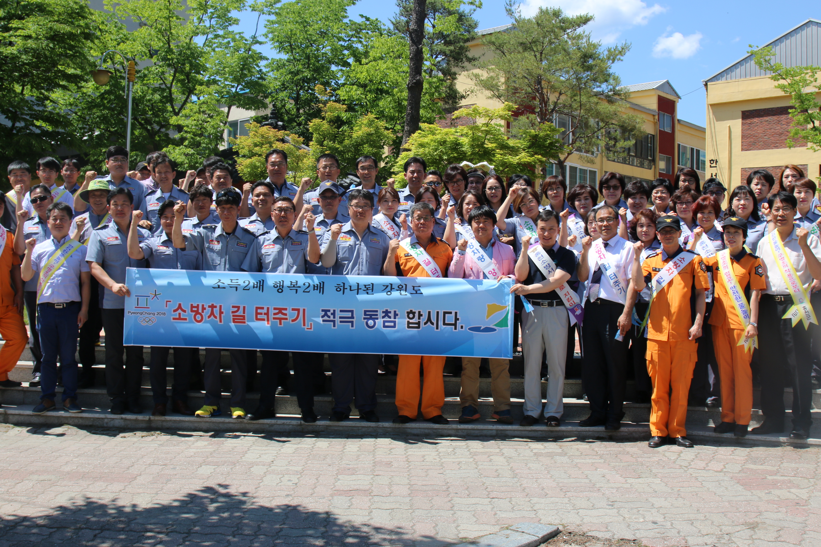 홍천소방서는 2일(목) 오후 2시 꽃뫼공원에서 화재·구조·구급출동시 인명 및 화재피해를 최소화 하는 골든타임 5분 이내 도착률 제고를 위하여 소방차 길 터주기 국민공감 캠페인 및