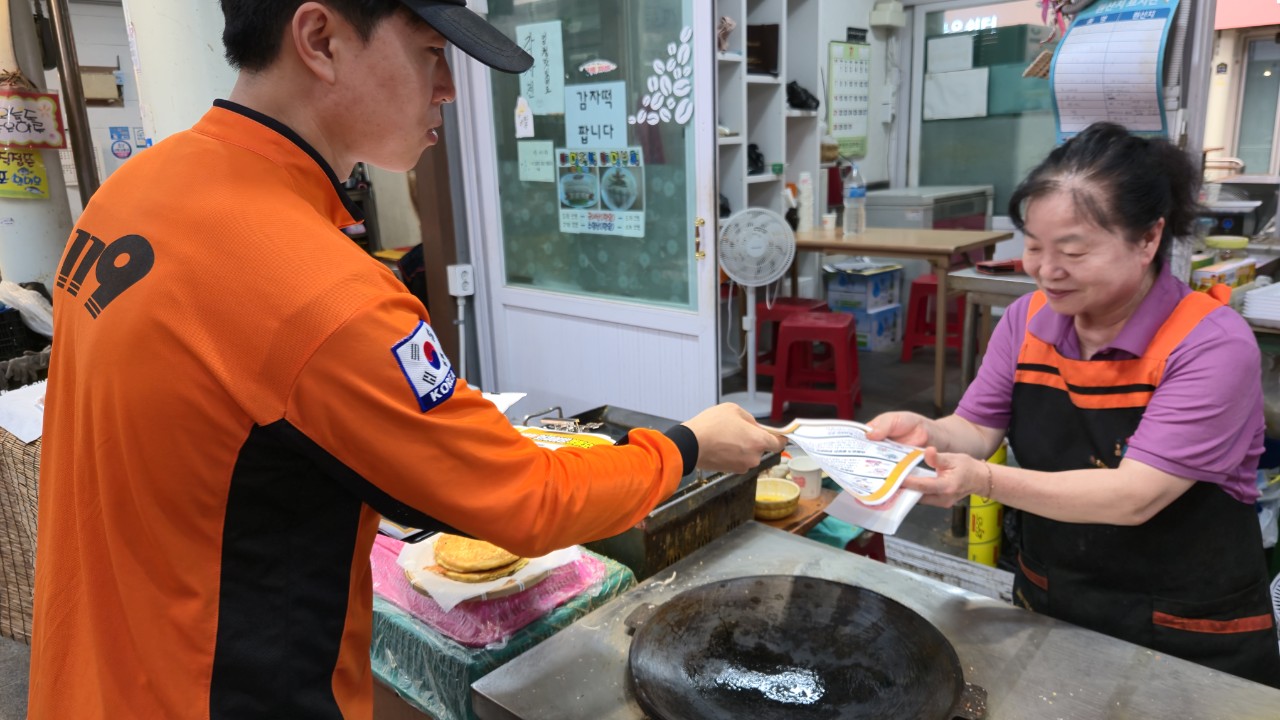 홍천소방서(서장 김숙자)는 25일, 관내 전통·중앙시장 ‘점포 점검의 날’을 맞아 점포주의 자율 안전 점검을 통해 화재 예방을 집중 홍보했다,