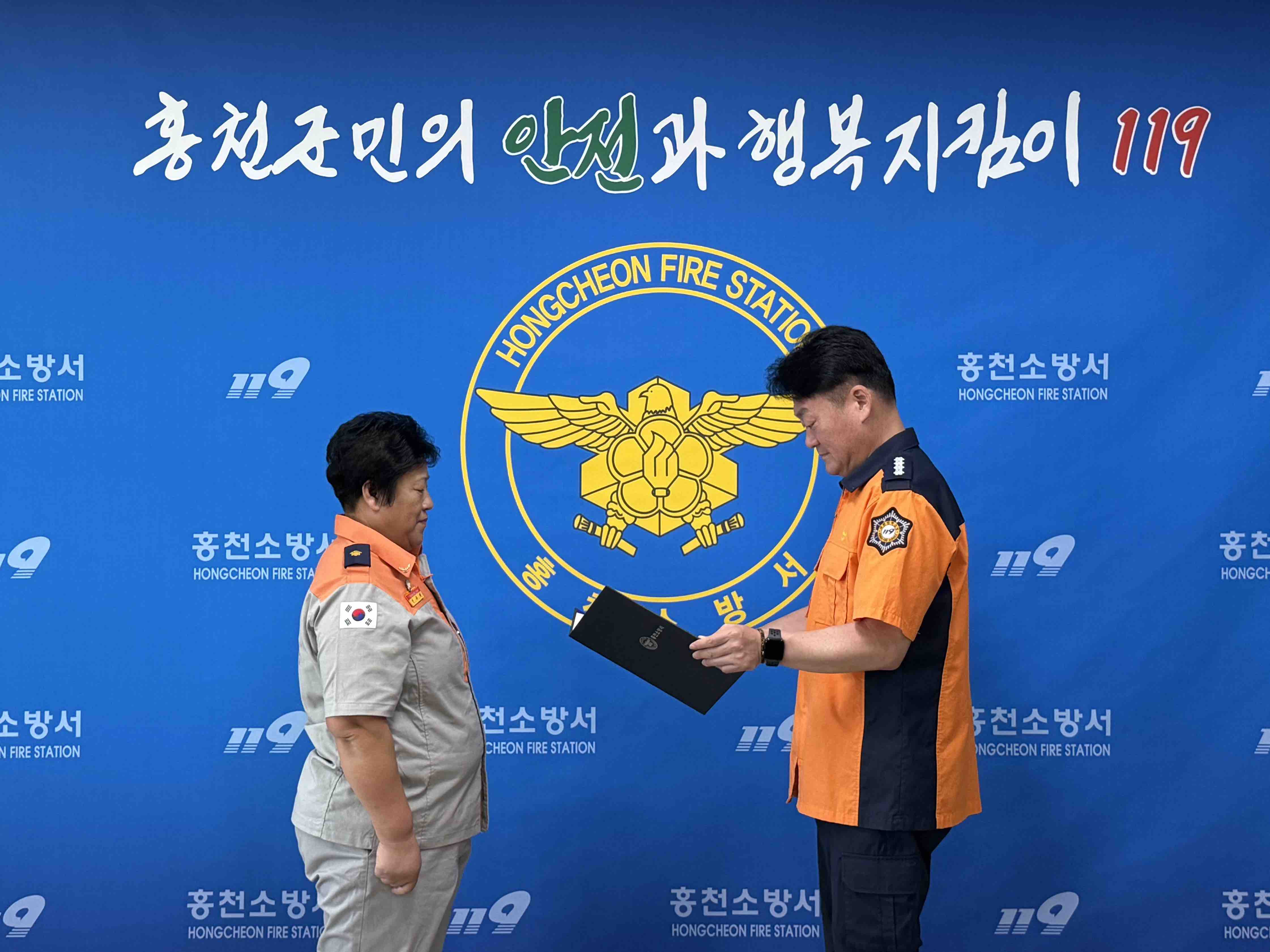 이날 표창을 받은 안수해 대원은 “평소 의용소방대 활동에서 배운 대로 움직였을 뿐”이라며 “당시에는 불을 끄는 것만 생각했는데, 이렇게 표창까지 받게 돼 감사하다”고 소감을 밝혔다. 이에 이강우 홍천소방서장은 “순간적인 판단과 용기 있는 행동이 지역사회의 안전을 지켰다”며 의용소방대원으로서 모범적인 사례“하고 평가했다.