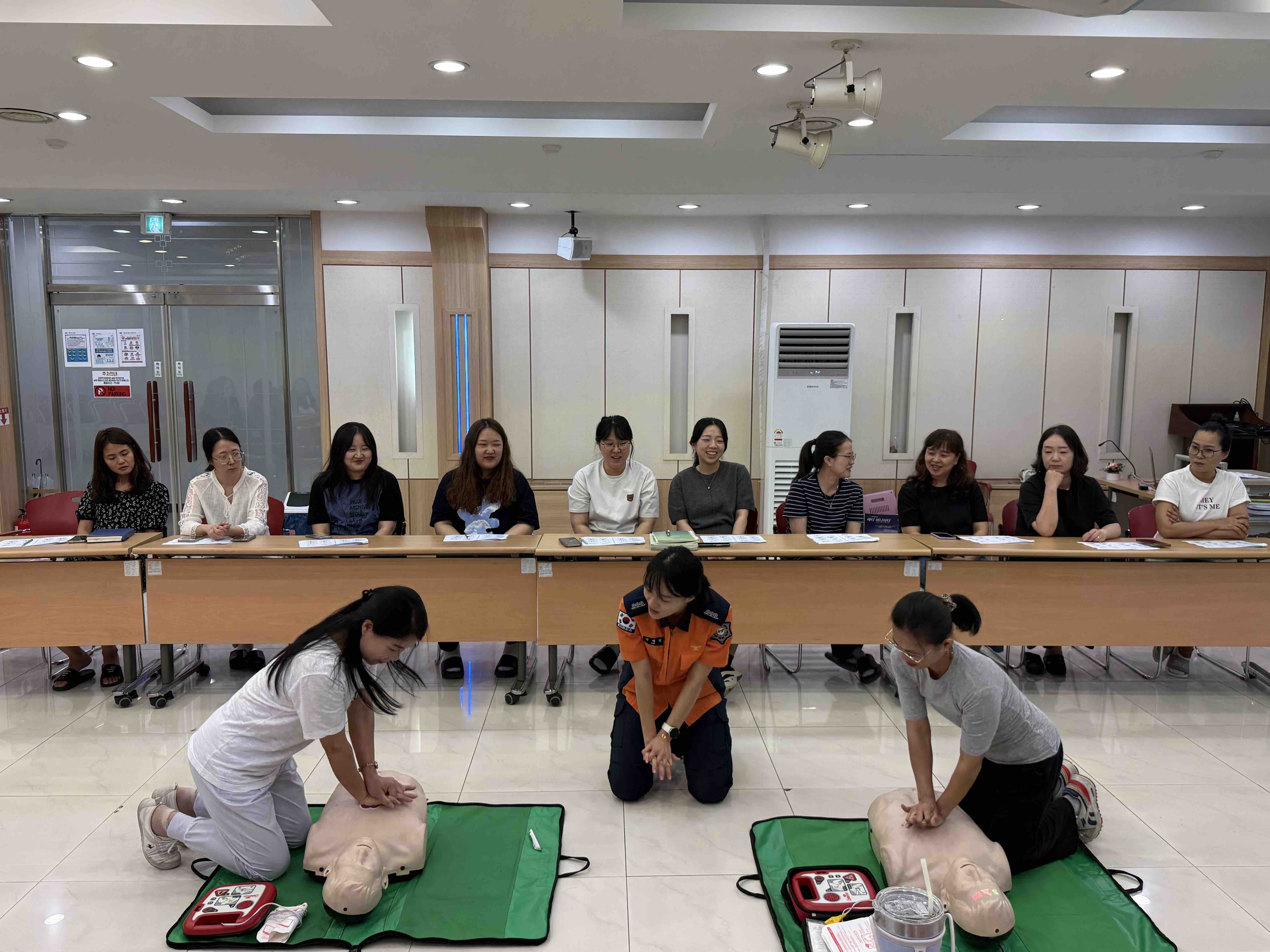 이번 교육은 홍천군가족센터 이용자 및 종사자 40명을 대상으로 진행됐으며, 베트남·캄보디아·중국 등 다양한 국적의 외국인이 참여했다. 홍천소방서는 다국어 교재를 배부하고 ▲심폐소생술(CPR) 및 자동심장충격기(AED) 사용법 교육 ▲소화기 사용법 ▲주거지·사업장에서의 화재 발생 대비 대피 요령 등을 중점적으로 지도했다.