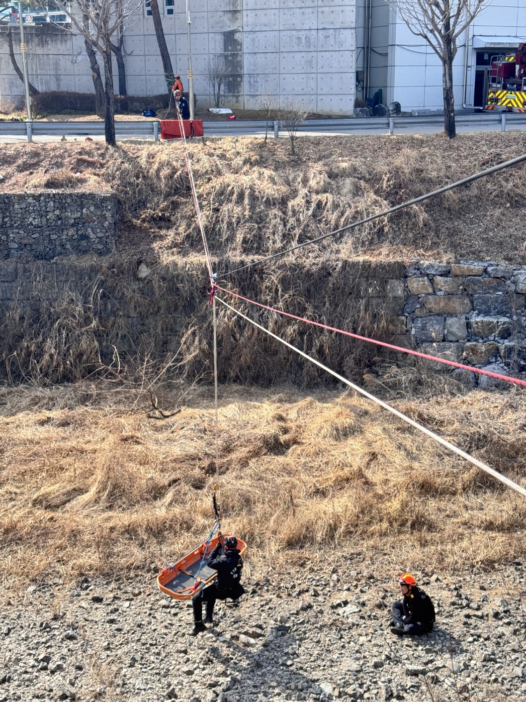 또한 로프 구조 시스템과 바스켓 들것을 이용한 인명구조 훈련과 함께, 구조 이후 발생할 수 있는 쇼크 예방을 위한 응급처치 훈련도 병행했다.