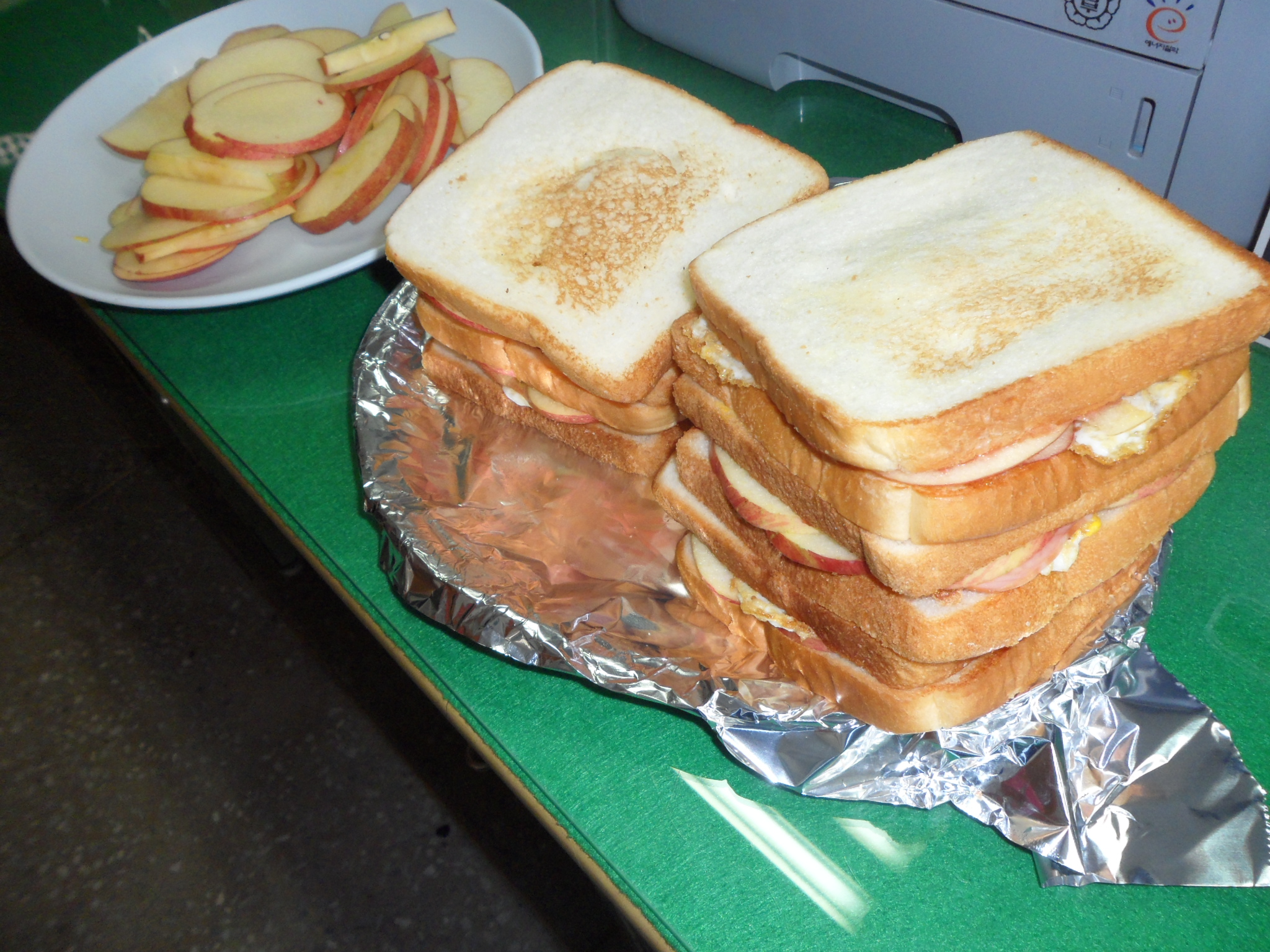 방금 서장님께서 오셔서 저희 3팀에게 사과가 싱싱한 사과가 아삭아삭 씹히는 맛있는 토스트를 해주고 가셧습니다.