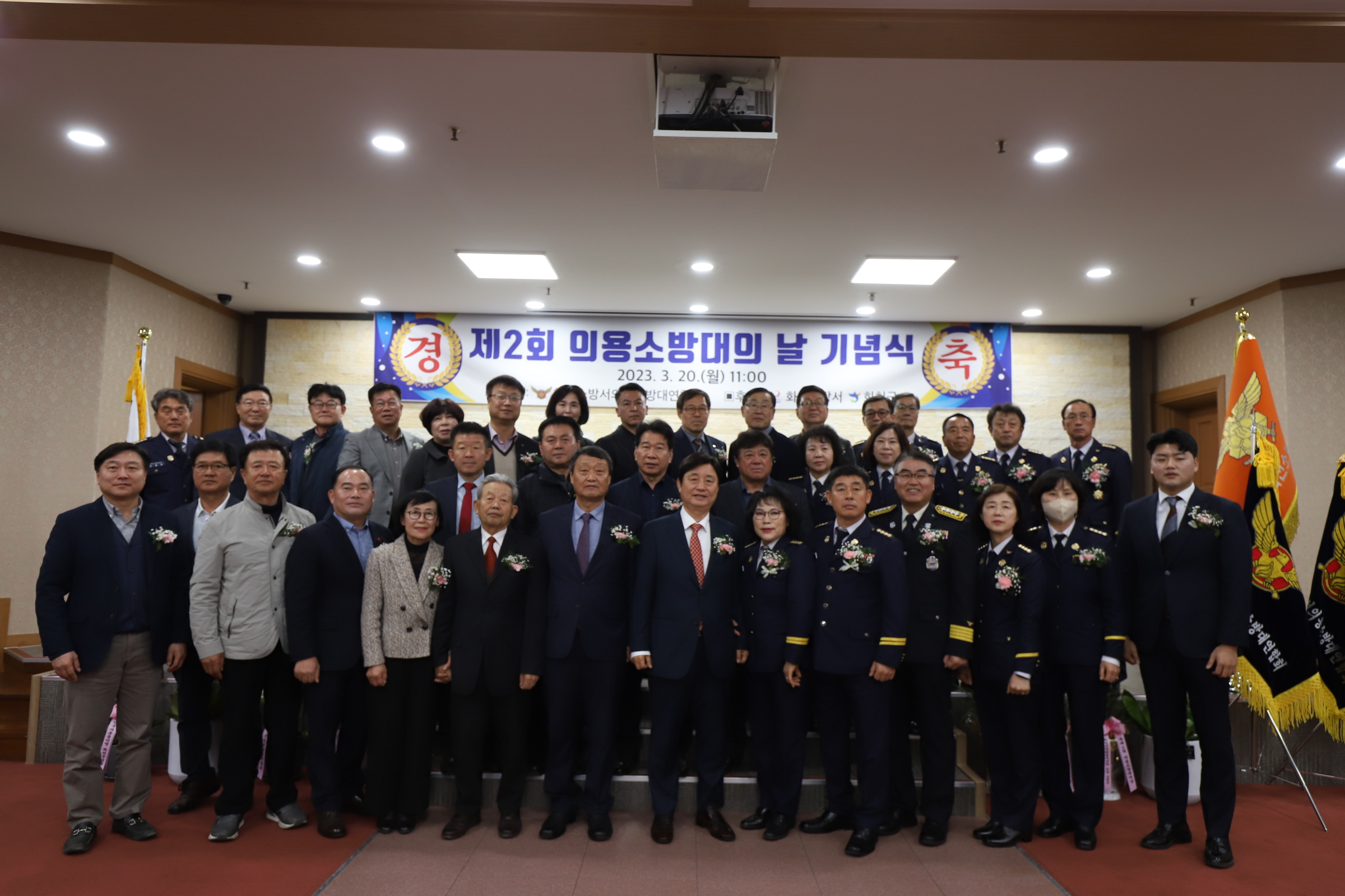 화천소방서(서장 염홍림)는 20일 제2회 ‘의용소방대의 날’을 맞아 최문순 화천군수, 노이업 화천군의회 의장, 박대현 강원도의회 의원, 봉윤일 NH농협은행 화천군지부장, 이선희 화천군의회 부의장등 군의원을 비롯한 지역사회 내빈등이 참석한 가운데 기념행사를 개최하고 유공 의용소방대원에 대한 표창장을 수여했다고 밝혔다.