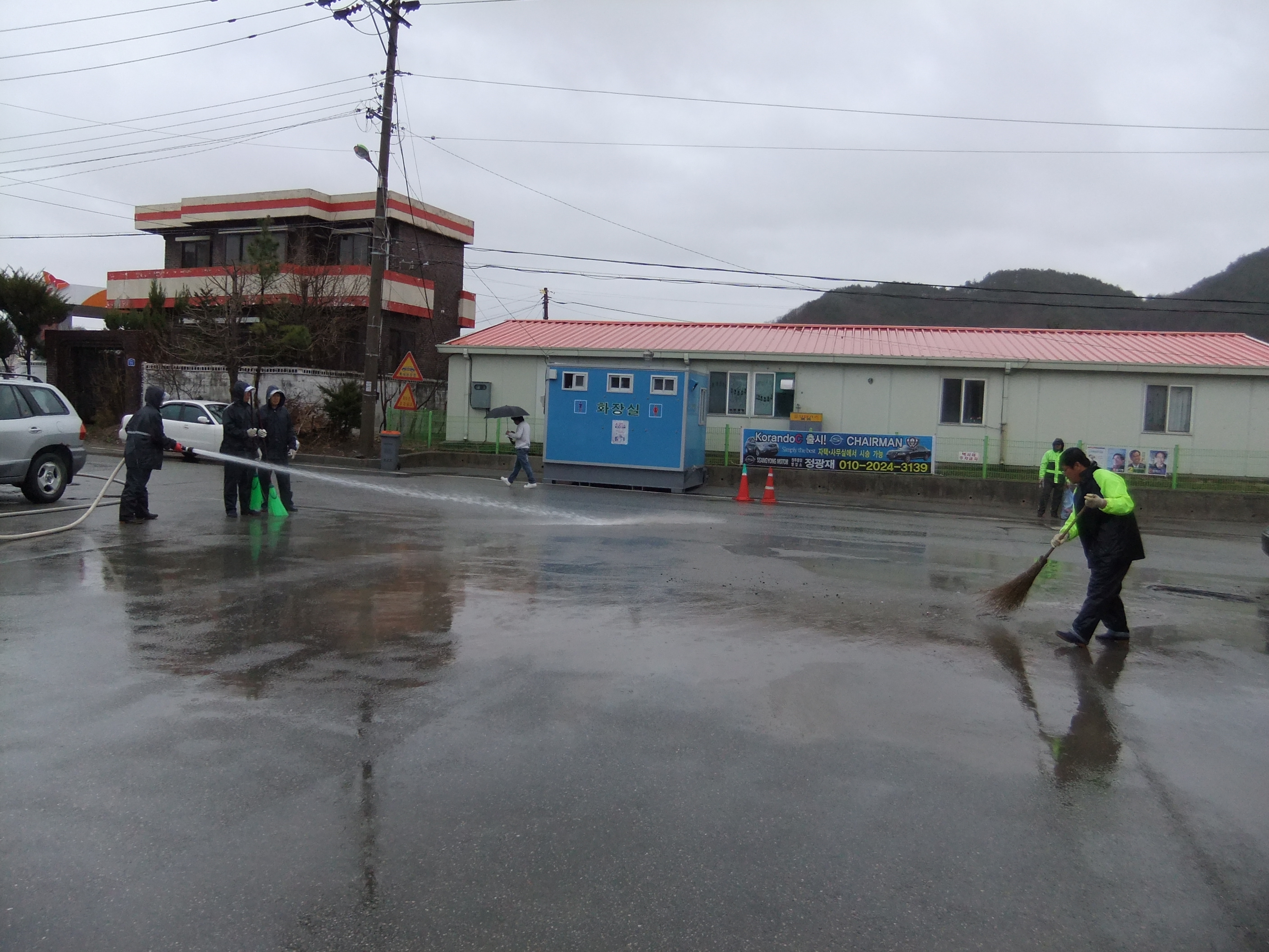 2011년4월22일 농번기로 바쁜철 일손과 물을조금이나마 아끼기위하여 비오는날 시가지물청소를 하여 겨울동안 찌든때를 없에고 깨끗한 시가지를 만들었읍니다...