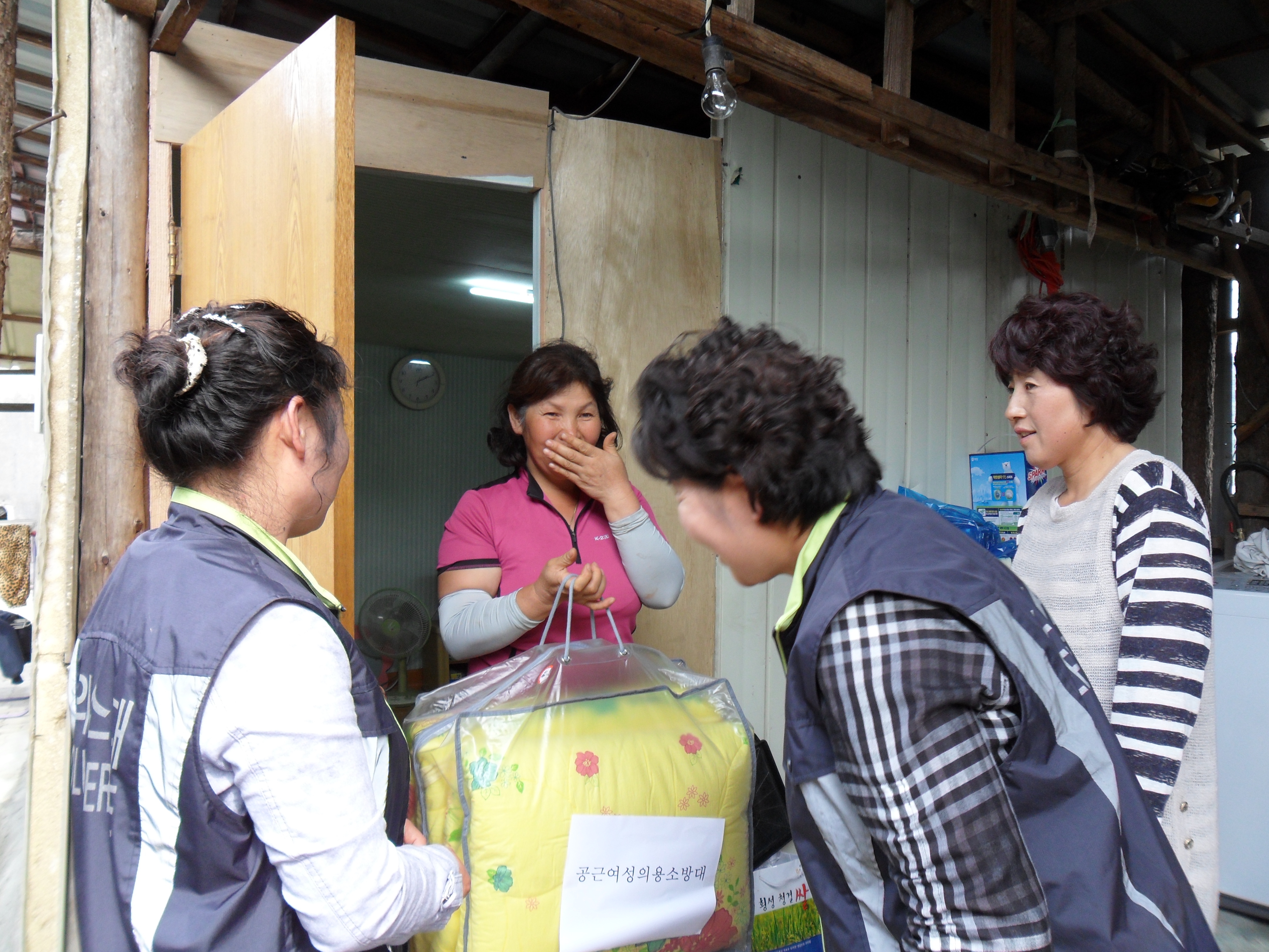 이불 등 구호품을 전달하였다.