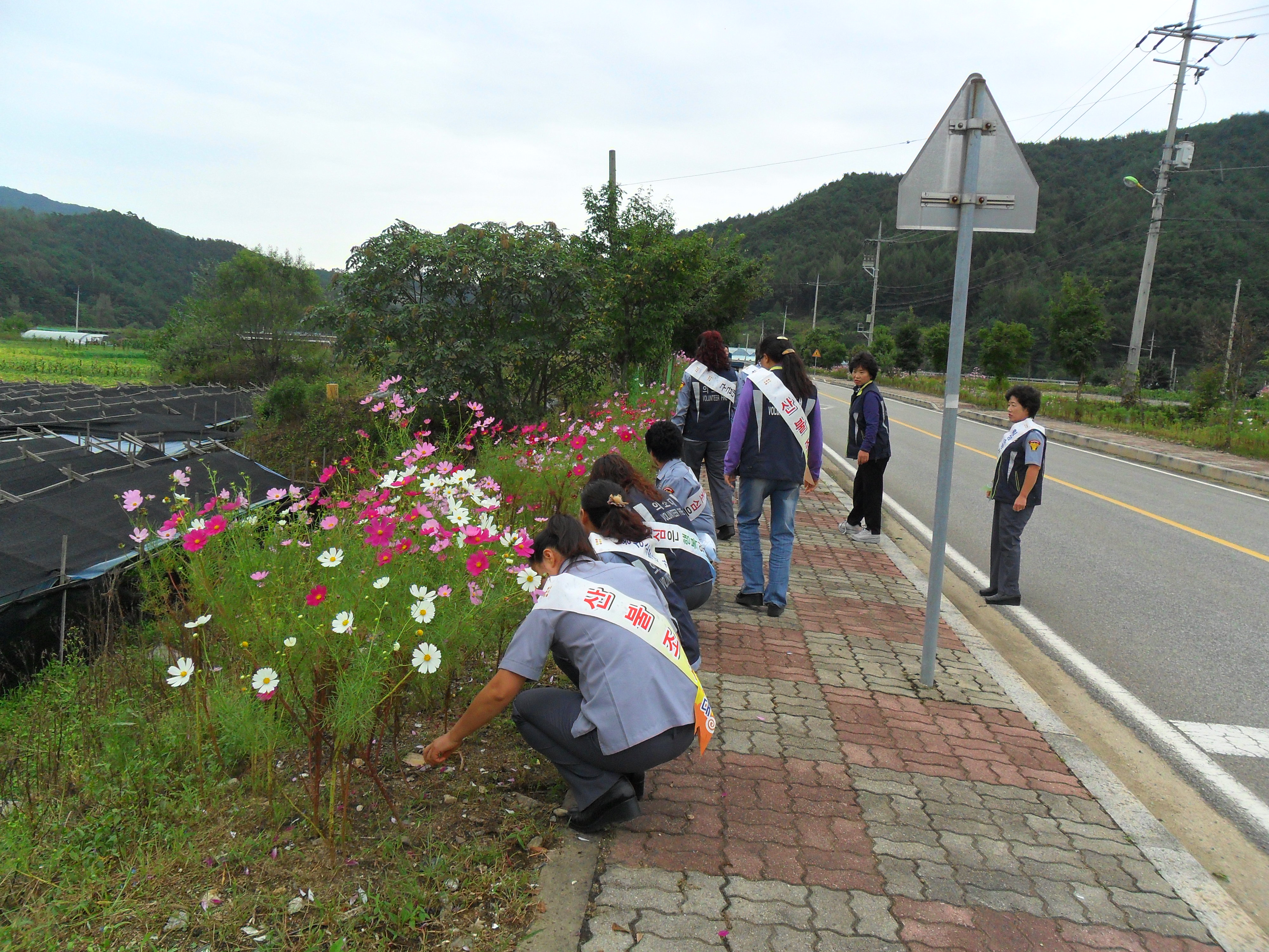 도로변에 있는 코스모스밭에 잡초를 제거하여 마을 행사에