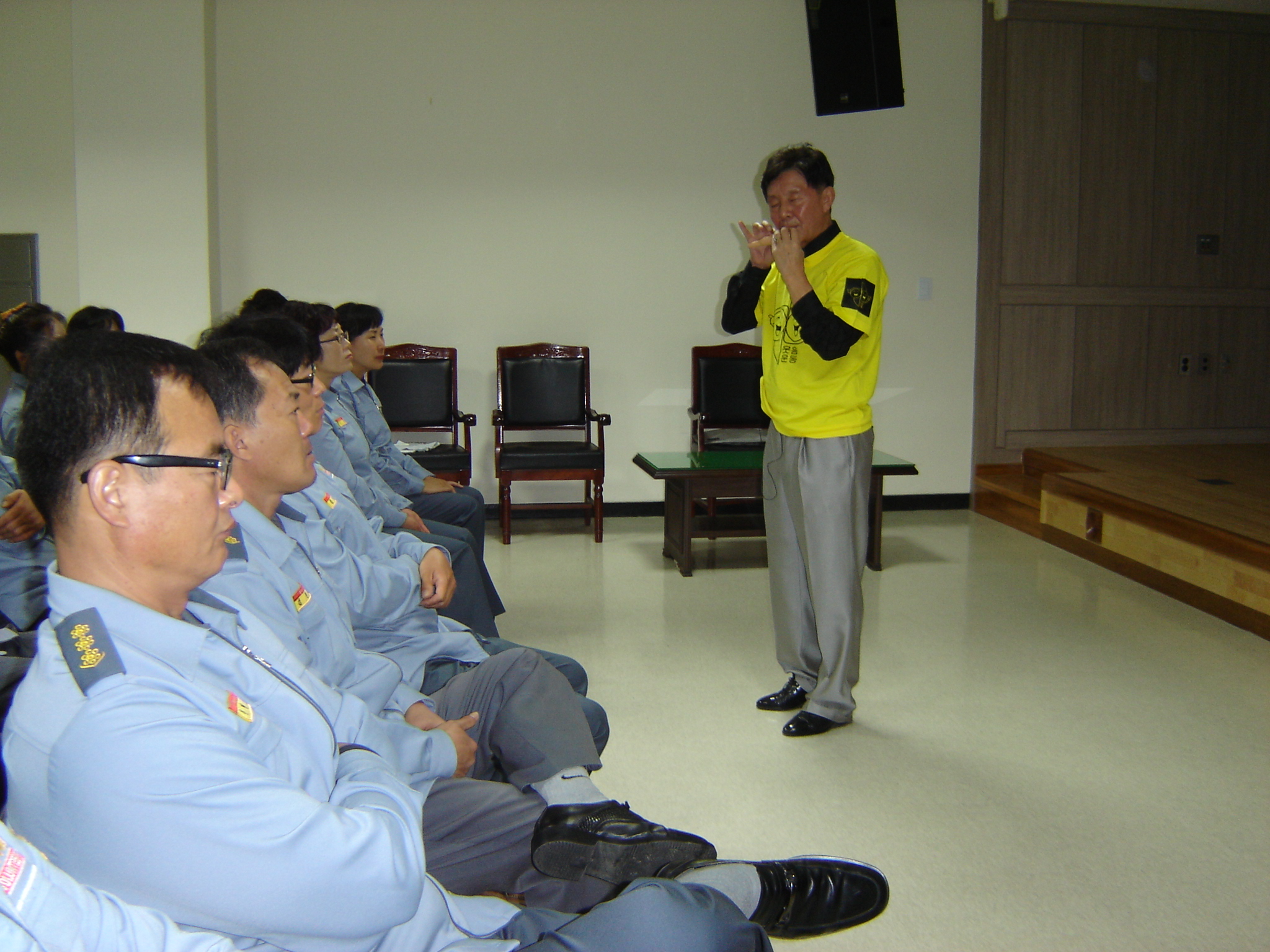 10월 정기 교육을 실시하였습니다. 전직 소방관이셨고 현재 웃음치료사로 계시는 강사님을 모시고 잼있게 스트레스 푸는 방법을 전수하셨습니다.