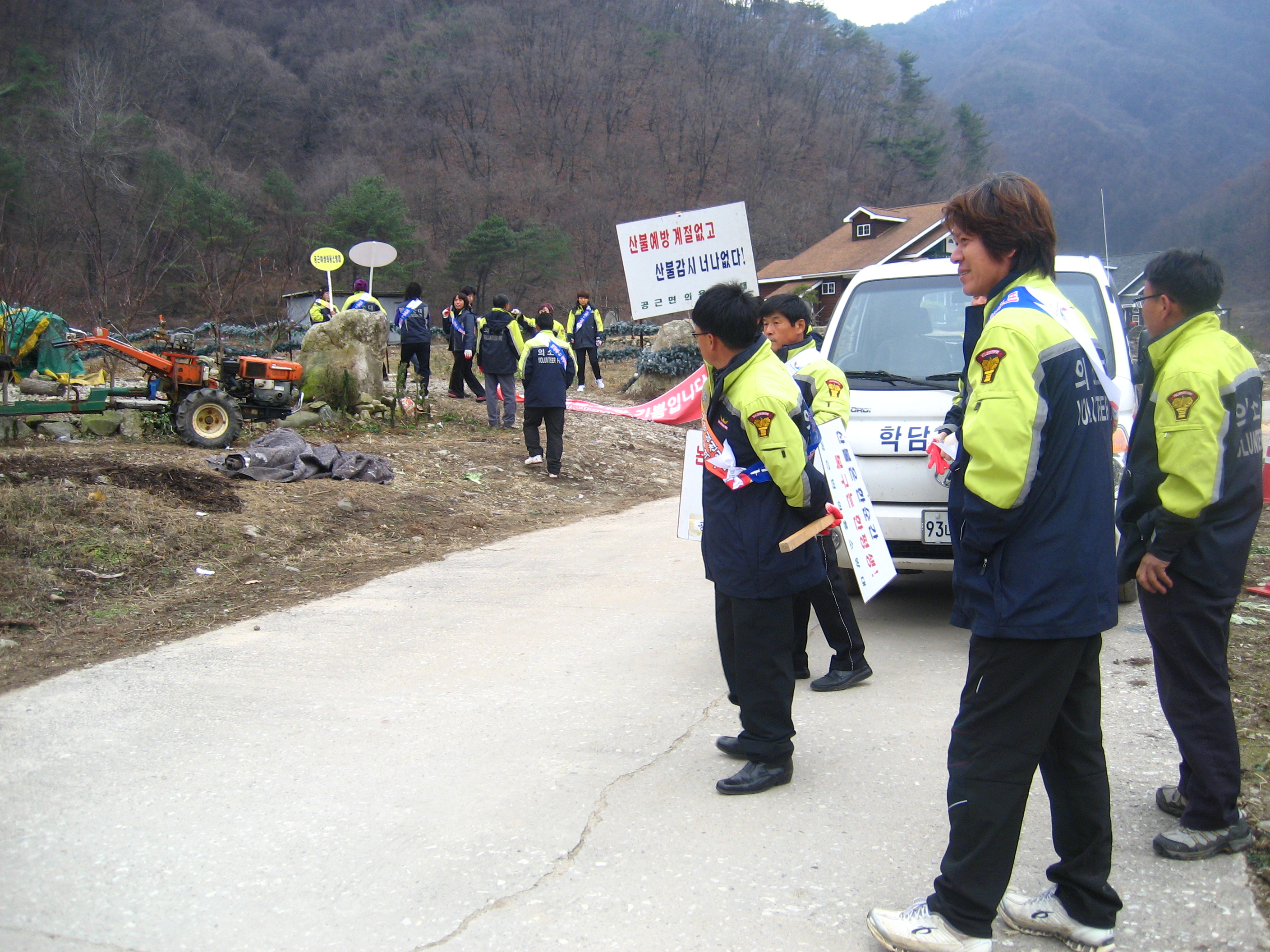 공근남.여의용소방대는 오음산 입구에서 불조심 캠페인을 하였습니다
