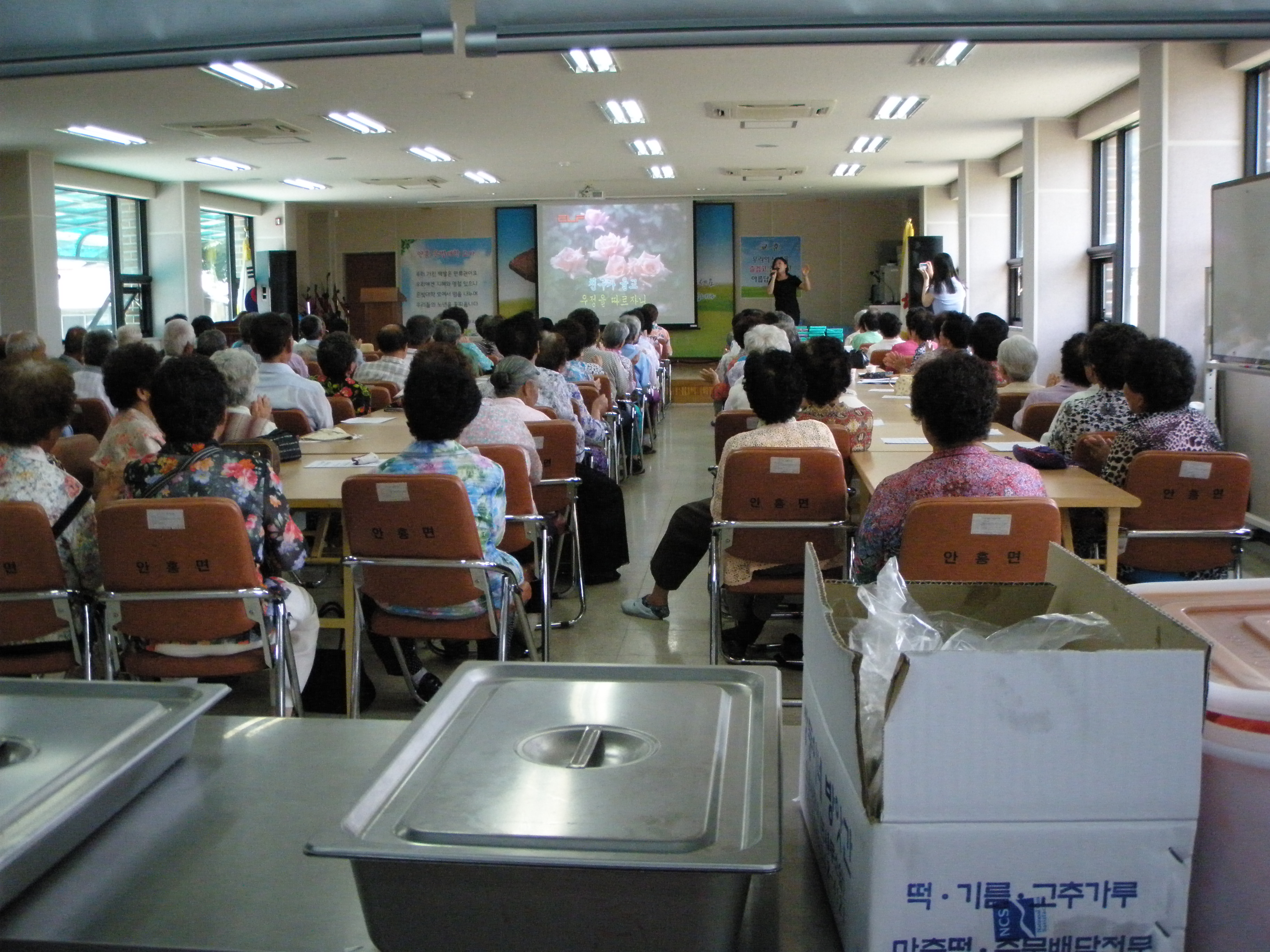 안흥여성대에서는 은빛대학점심봉사을 하였습니다 .어르신들은 싫으시겠지만 오늘 방학을 하셨습니다.어르신들은 모두 아쉬워 하셨습니다. 9월 부터 다시 시작합니다.
