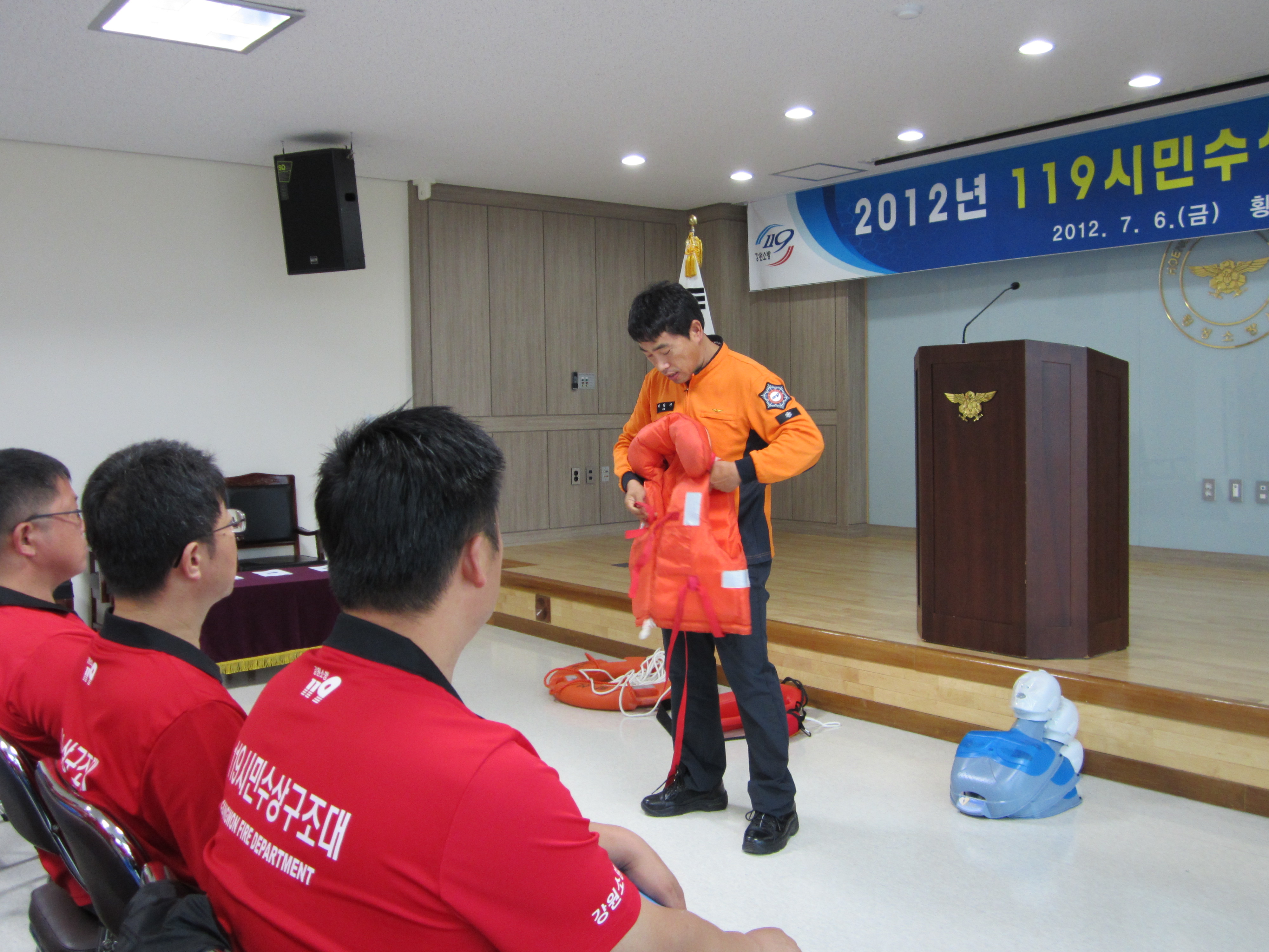 2012년 7월 6일 오전 10시 횡성소방서 3층 대회의실에서 발대식 및 교육이 있었습니다.