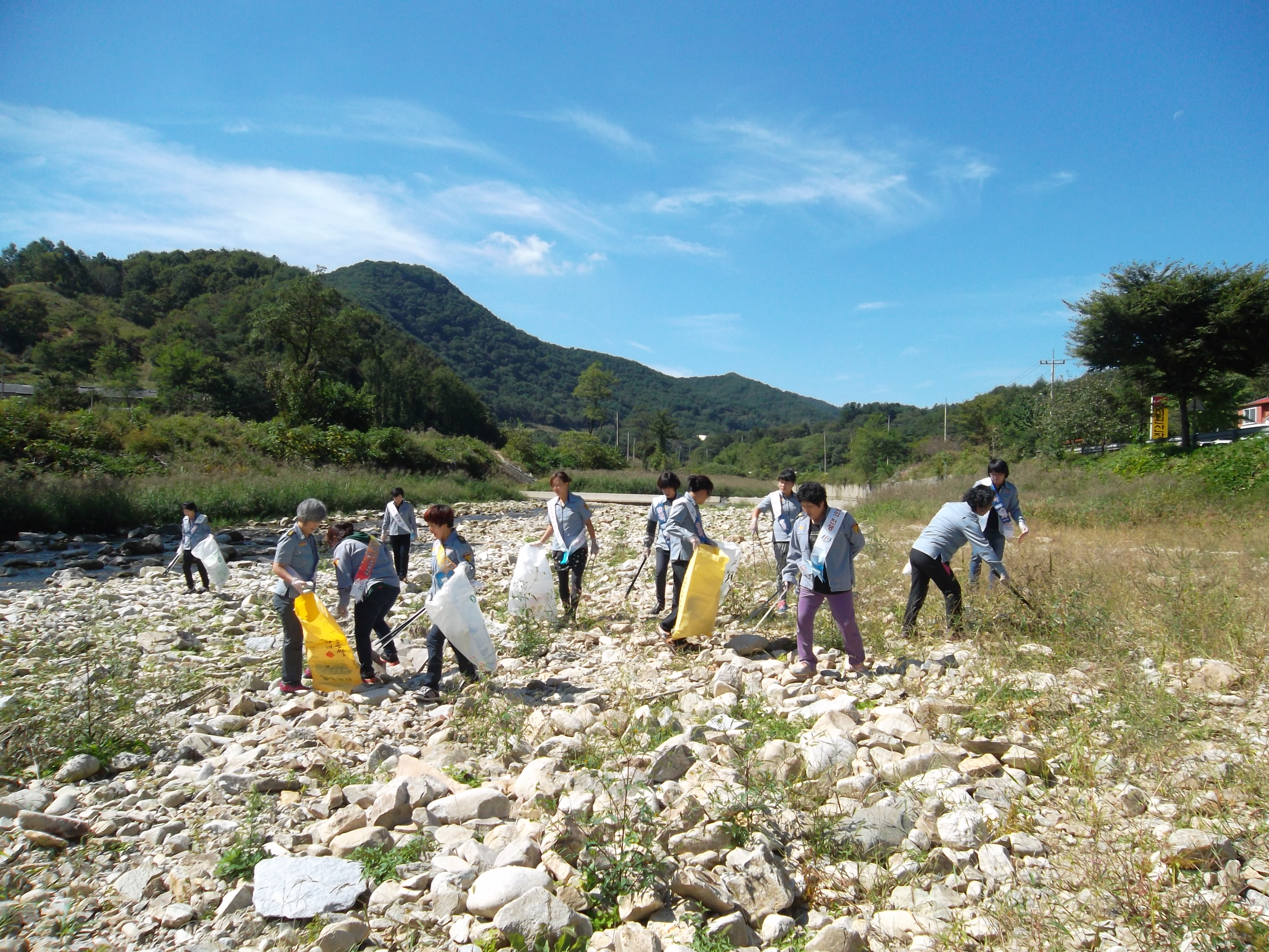 서원여성대장(윤은숙)외 21명은 9월 정기교육후 서원면 대산유원지 환경정리 실시함