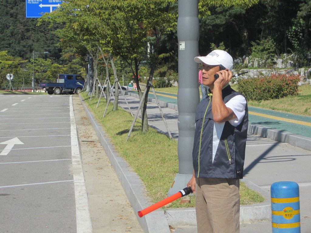 교통정리 봉사를 실시하게 되었습니다. 1일 2교대 총 12명씩 투입되고 있습니다. 2013년 10월 3일