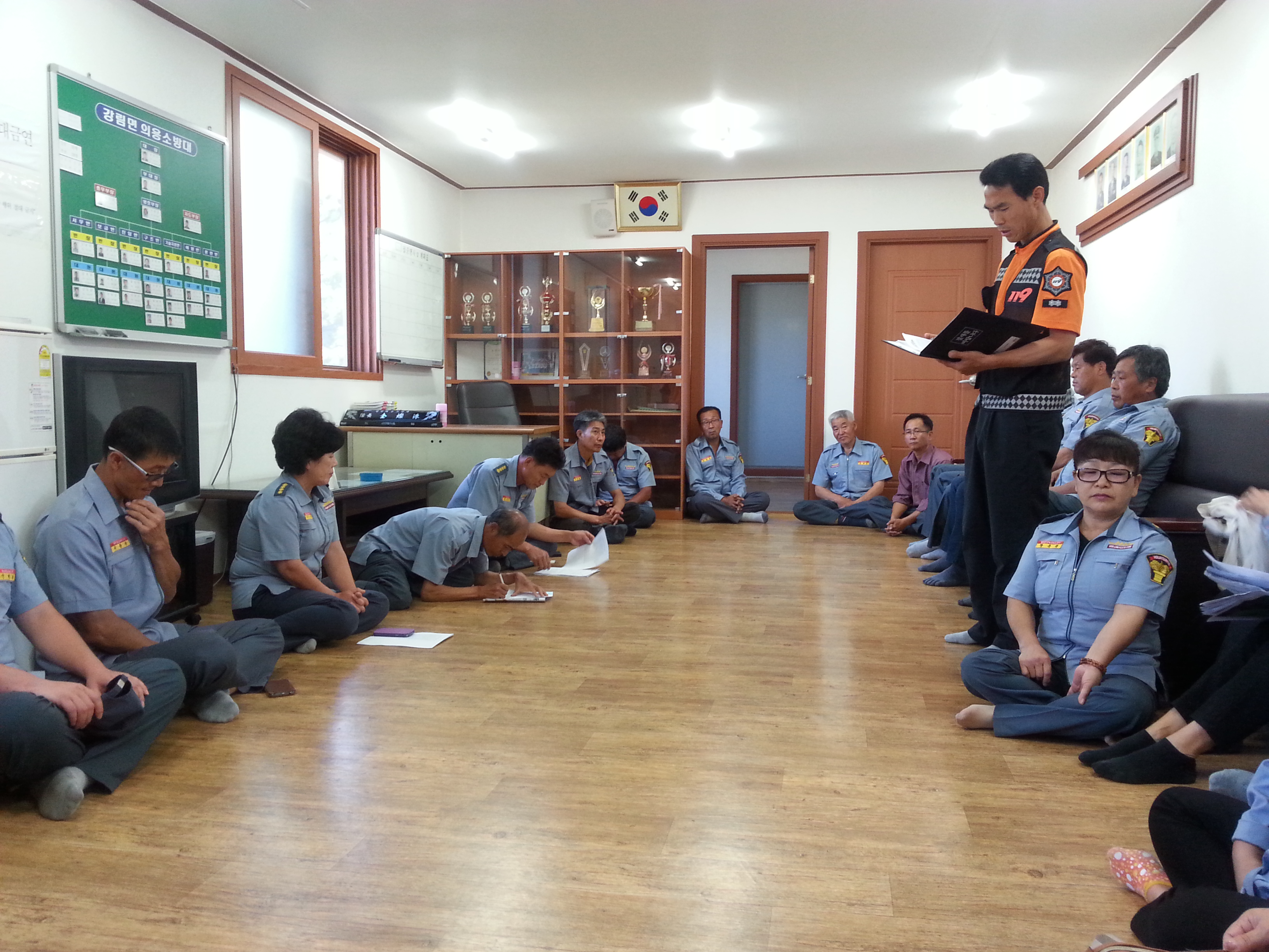9월정기교육에20명의 대원들이 참석하여 소방에 대한 철저한 교육을 받았으며
