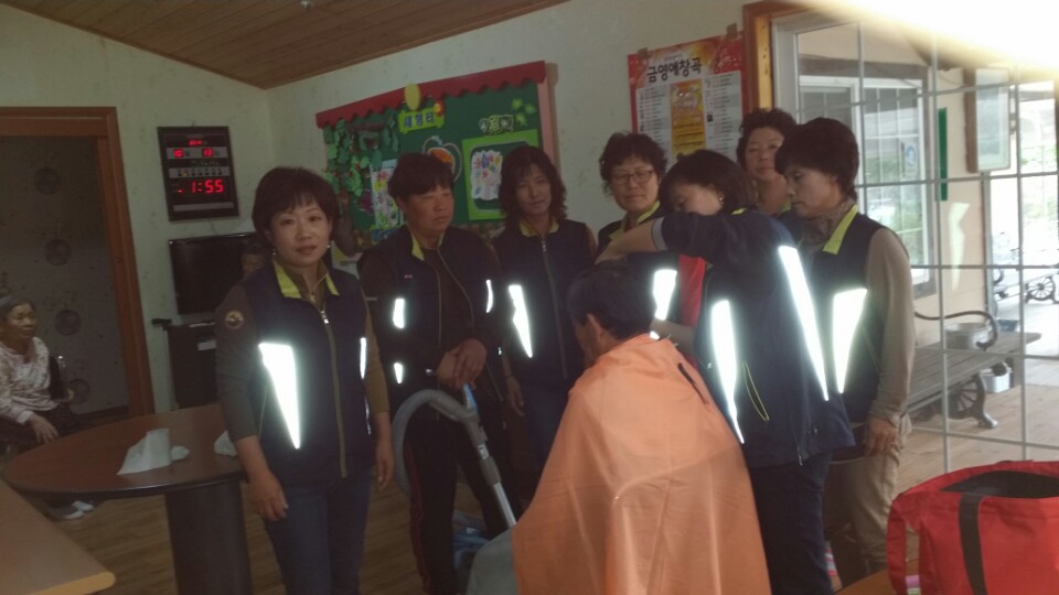 둔내여성의용소방대 고복란 대장 외 6명 새힘터 요양원 이.미용봉사를 하였습니다.
